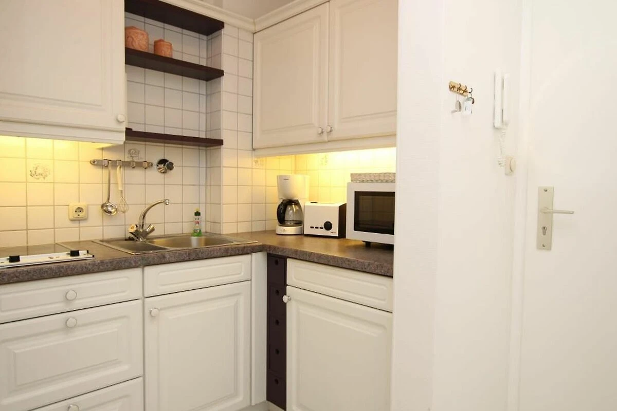 Lage:Das Appartementhaus steht gegenüber dem Kurzentrum in unmittelbarer Nähe der Fussgängerzone Friedrichstrasse. Zum Strand sind es keine 100 m. Das Appartement befindet sich in der 4. Etage (Aufzug über einige Stufen zu erreichen) und hat einen Westbalkon. .