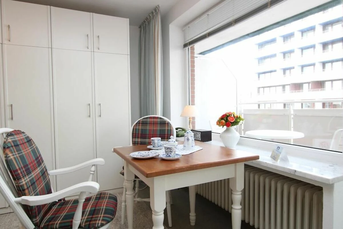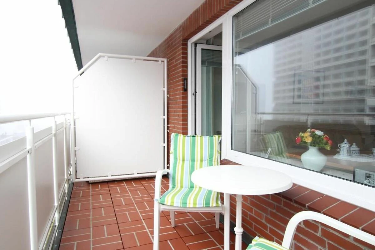Das Appartementhaus steht gegenüber dem Kurzentrum in unmittelbarer Nähe der Fussgängerzone Friedrichstrasse. Zum Strand sind es keine 100 m. Das Appartement befindet sich in der 4. Etage (Aufzug über einige Stufen zu erreichen) und hat einen Westbalkon.