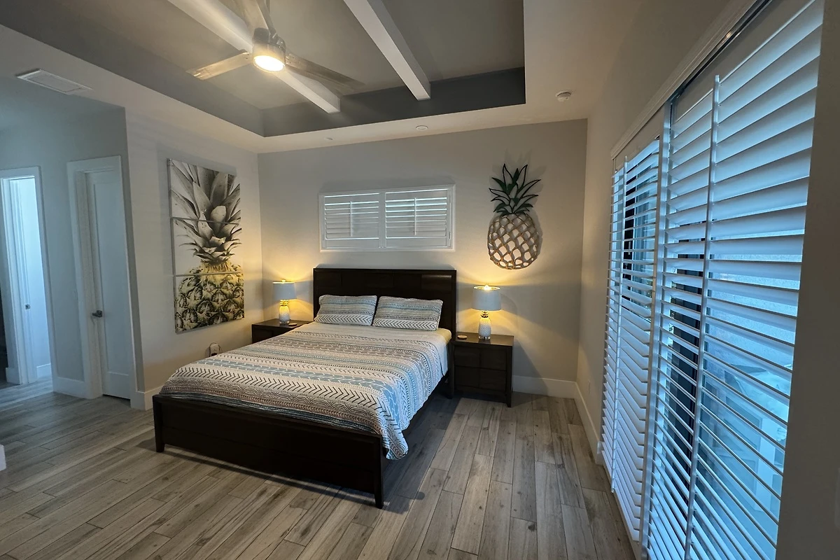 Das gemütliche Wohnzimmer bietet ihnen eine Fireplace und einen 75 Zoll Tv mit Soundsystem. Die offene Küche ist mit allem Ausgestattet was es für einen schönen Urlaub braucht. Kühlbox und Liegestühle sowie Sonnenschirme für den Strandbesuch stehen ihnen zur Verfügung. Der grosse Masterbed Room mit Kingsize Bed hat direkten Zugang zum Pool und der Terrasse. Das 2. Gästeschlafzimmer ebenfalls mit Kingsize Bed verfügt ebenfalls einen direkten Zugang zum Pool.