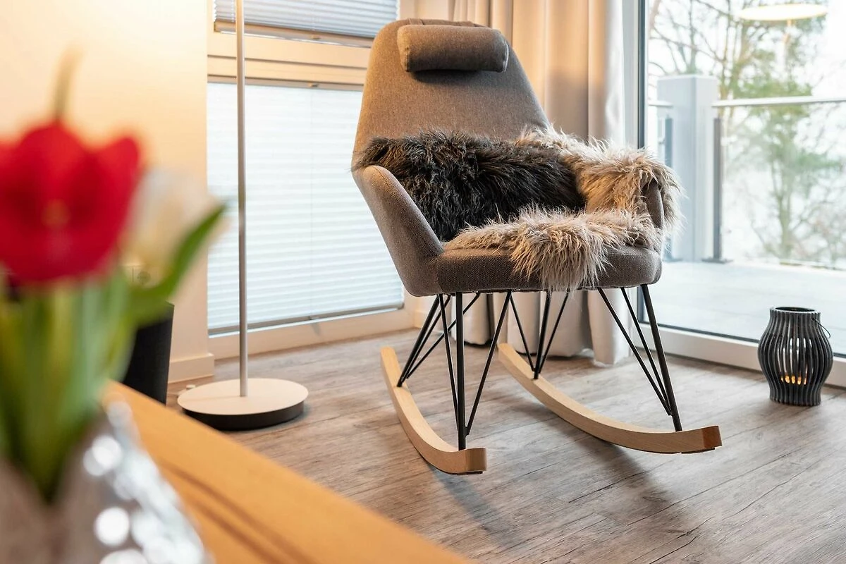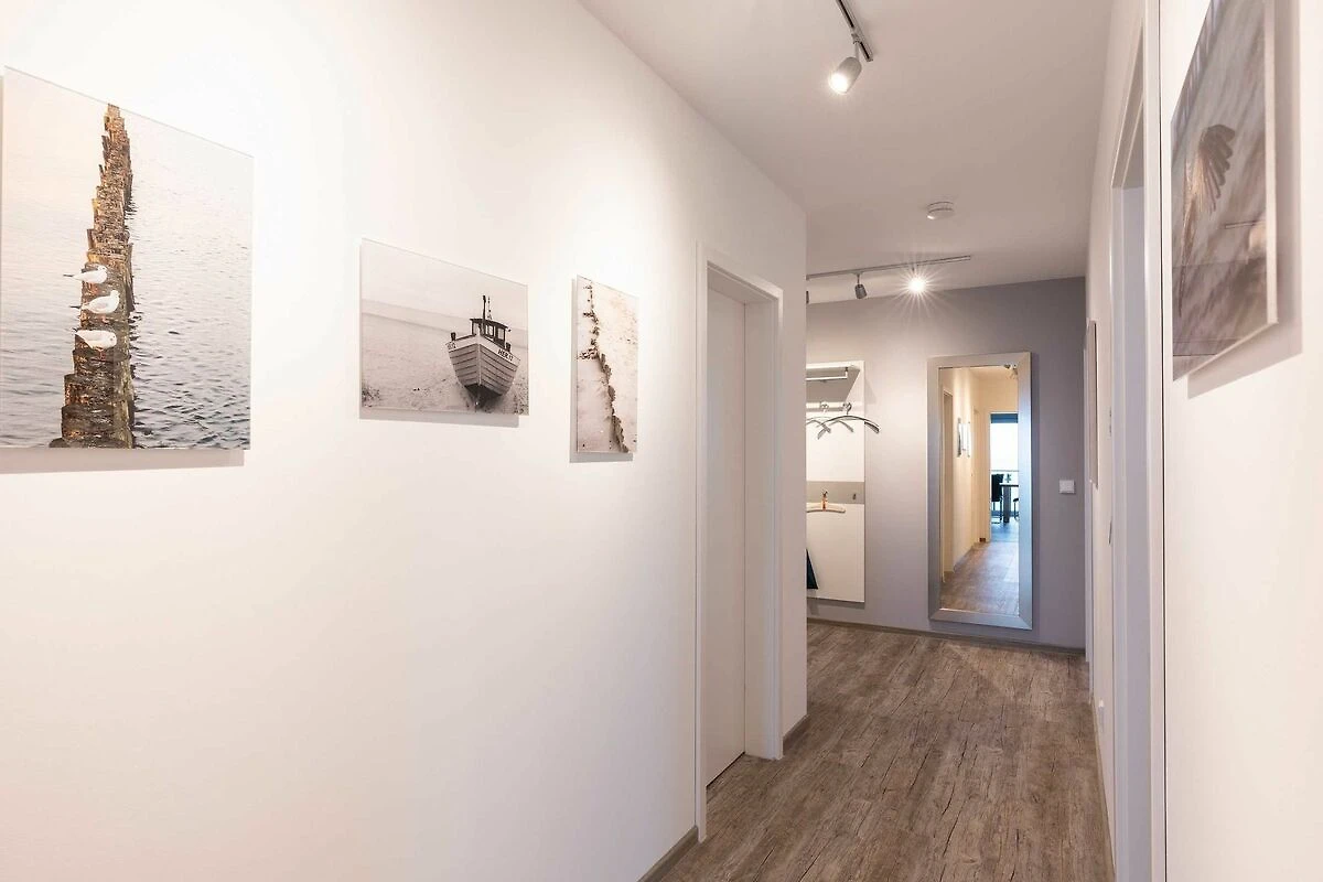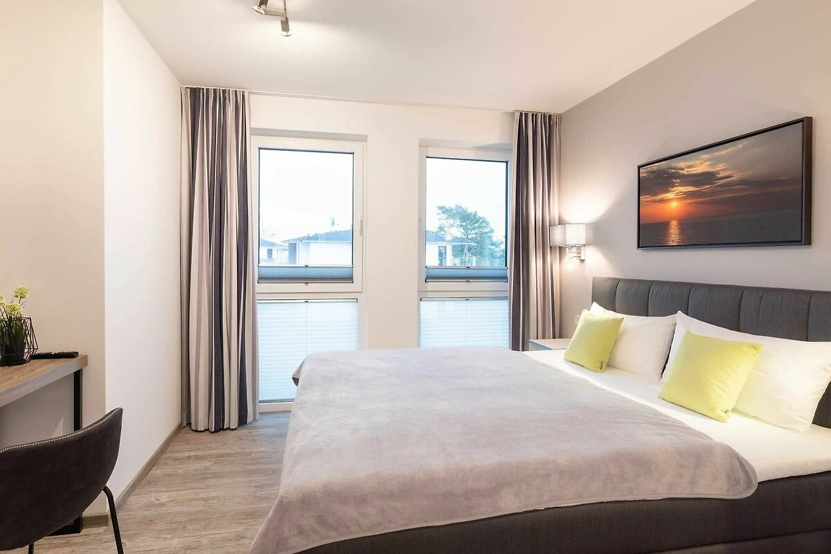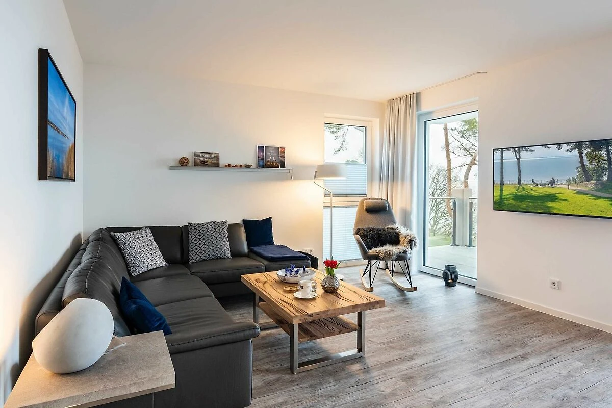 Diese lichtdurchflutete, helle 4-Zimmer-Wohnung im obersten Geschoss von Haus 7 (Aufzug vorhanden) mit Platz für maximal 6 Personen verfügt über eine Wohnfläche von 100 m² und hat 3 Schlafzimmer sowie 2 voll ausgestattete Duschbäder. Die grosse Sonnenterrasse mit 17 m² liegt in idealer Süd-Ausrichtung. Die Wohnung ist modern eingerichtet mit offenem Wohn-Essbereich, grossem Esstisch, Ledersofa sowie Smart-TV (inkl. Sky-Abo). Die hochwertig ausgestattete Küche, offen zum Wohnbereich, lässt keine Wünsche offen. Erholsamer Schlaf in den beiden Schlafzimmern mit Boxspringbetten und Smart-TV ist garantiert. Im dritten Schlafzimmer befindet sich ein bequemes Schlafsofa (Liegefläche: 1,60 x 2,00 m) und ein Smart-TV. Das Badezimmer en Suite ist mit einer begehbaren Dusche ausgestattet. Auf der grossen, überdachten Sonnenterrasse mit Essgruppe und jeweils zwei Relax-Sesseln, Fusshockern sowie einem Sonnenschirm können Sie die Seele baumeln lassen.