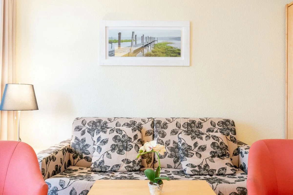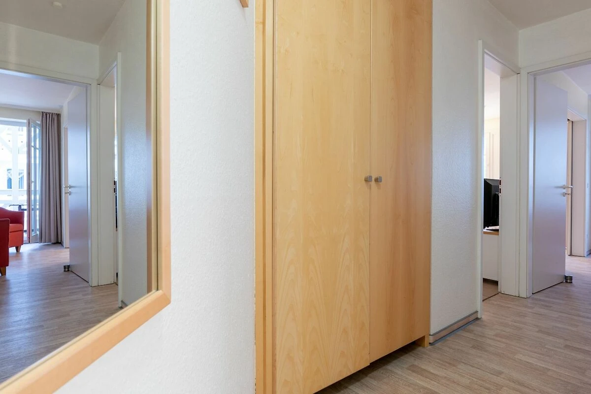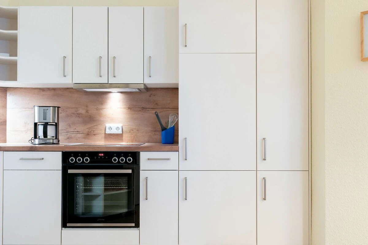 Für Fahrräder steht ein Fahrradkeller zur Verfügung und auch WLAN ist in der Wohnung vorhanden. Für Unterhaltung sorgt der Fernseher mit Sky-Sendern. Im Badezimmer findet man eine Badewanne vor. Ausserdem gibt es einen Tiefgaragenstellplatz, der den Gästen zur Verfügung steht. Ein Brötchenservice wird ebenfalls angeboten.