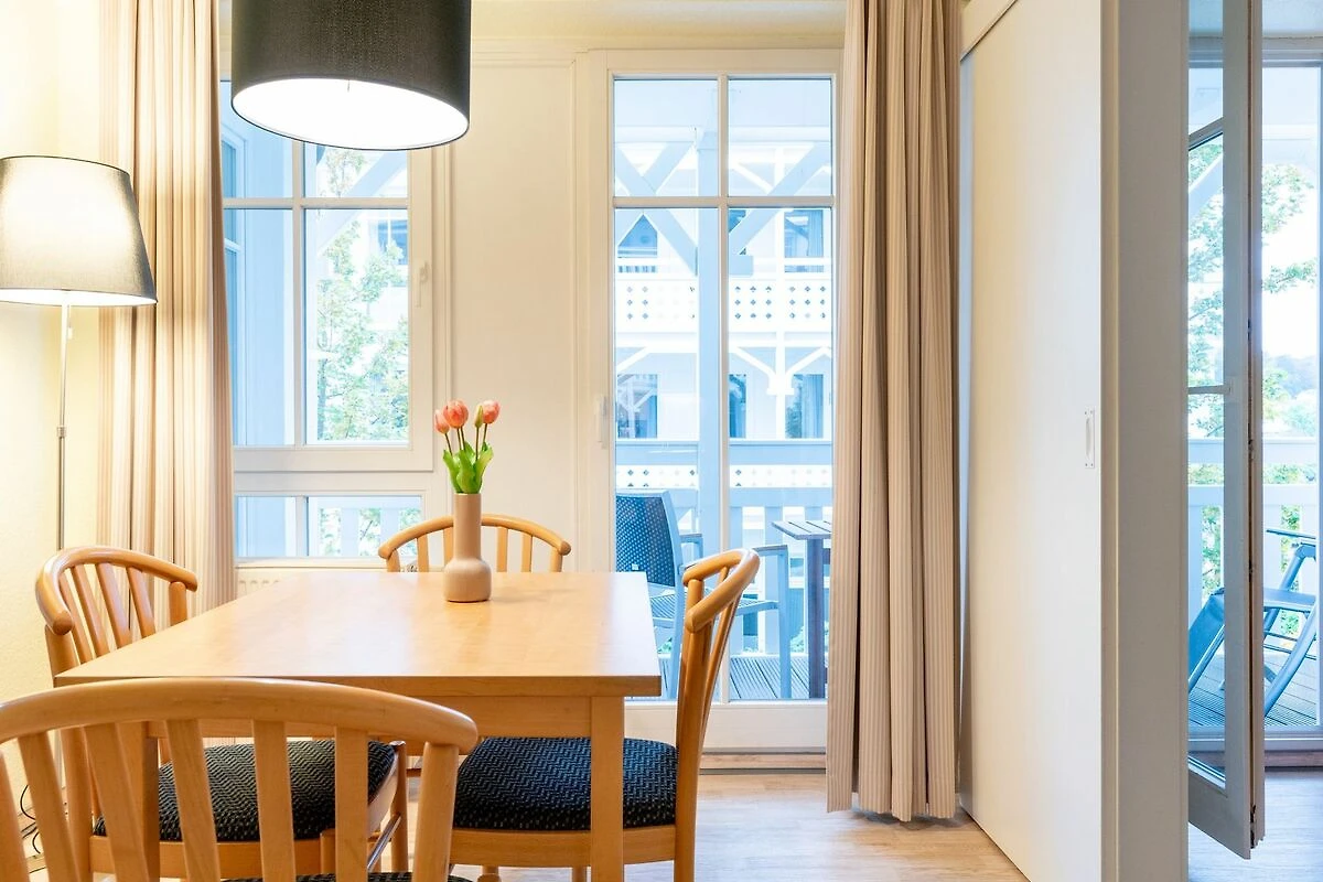 Strahlend weisse Häuser in klassischer Bäderarchitektur verleihen unserer Ferienwohnanlage den Charme des Aussergewöhnlichen. Direkt auf dem Gelände des Seepark Sellin finden Sie kleine nette Geschäfte, Restaurants, das AHOI! - ein einzigartiges Badeparadies auf Rügen, einen hauseigenen Spielplatz mit der Seeparkschnecke, einen Tischkicker und eine Tischtennisplatte sowie eine 18-Loch-Minigolfanlage.