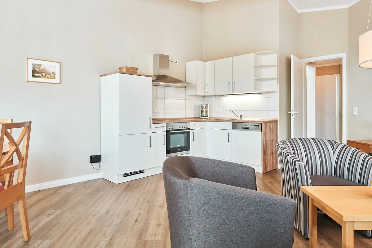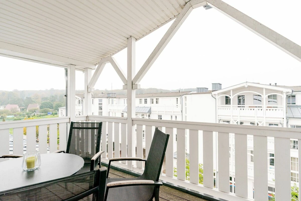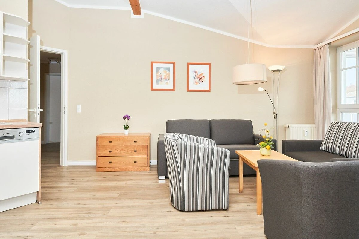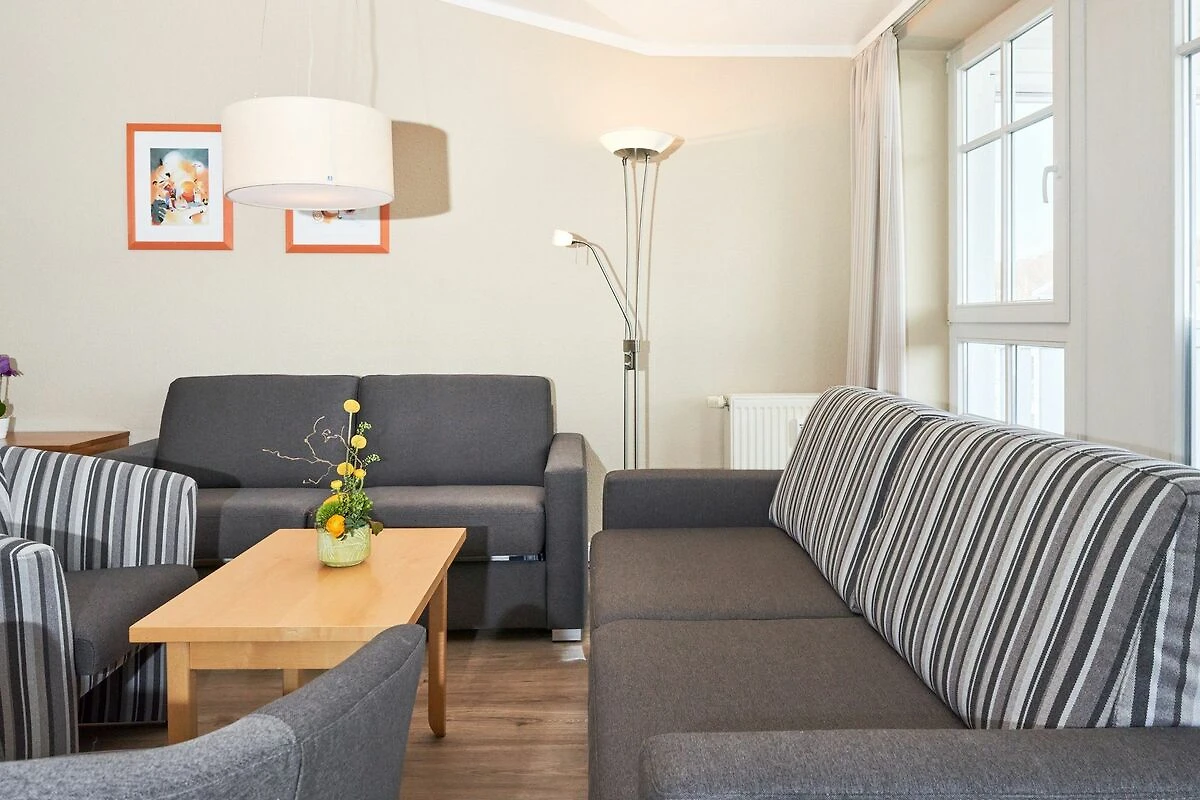 Sie befindet sich im 3. Obergeschoss, bequem mit einem Aufzug zu erreichen, der Ferienanlage Seepark Sellin und ist ca. 900 m vom Ostseestrand und dem Selliner See entfernt. Einkaufsmöglichkeiten und ein Bäcker sind in der Ferienanlage bequem zu Fuss erreichbar.