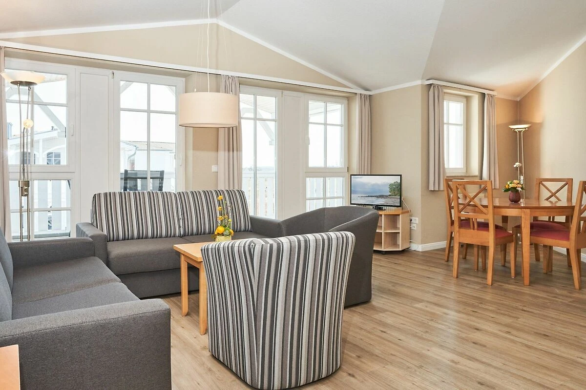 Strahlend weisse Häuser in klassischer Bäderarchitektur verleihen unserer Ferienwohnanlage den Charme des Aussergewöhnlichen. Direkt auf dem Gelände des Seepark Sellin finden Sie kleine nette Geschäfte, Restaurants, das AHOI! - ein einzigartiges Badeparadies auf Rügen, einen hauseigenen Spielplatz mit der Seeparkschnecke, einen Tischkicker und eine Tischtennisplatte sowie eine 18-Loch-Minigolfanlage.