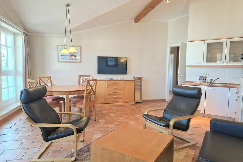 Die Ferienwohnung 411 befindet sich im Seepark Sellin und bietet Platz für bis zu 6 Personen. Sie umfasst eine Gesamtgrösse von 70 m² und verfügt über 2 Schlafzimmer und 1 Badezimmer. Für die 5. und 6. Person lässt sich die Schlafcouch im Wohnzimmer ausziehen. Die Wohnung befindet sich im Haus Haus Baabe, liegt in der 3. Etage und ist mit einem Fahrstuhl sehr gut zu erreichen.