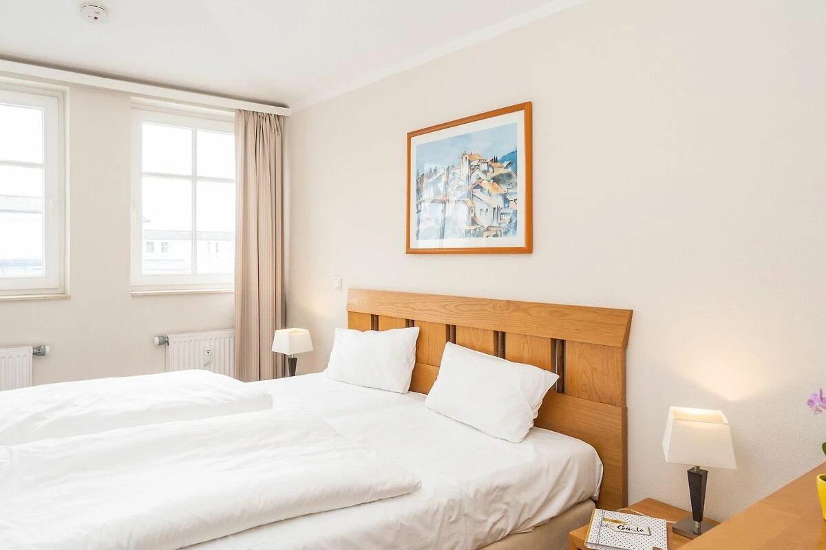 Die Ausstattung der Ferienwohnung beinhaltet unter anderem einen Flachbildfernseher, eine Kaffeemaschine (Filter), eine Mikrowelle, einen Geschirrspüler sowie Bettwäsche, die bereits im Preis inbegriffen ist. Ein Balkon, eine offene Wohnküche, ein Fahrradkeller, ein WLAN-Anschluss und ein Fernseher mit Sky-Sendern stehen ebenfalls zur Verfügung. Für Ihren Komfort gibt es ausserdem einen Tiefgaragenstellplatz und einen Brötchenservice.