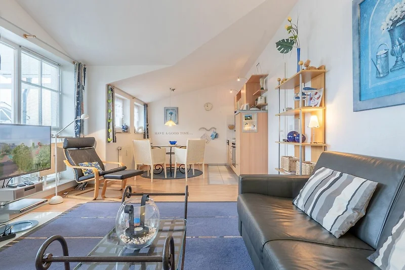 Die Ferienwohnung verfügt über kostenfreies WLAN und die Erstausstattung an Bettwäsche ist inklusive. Das Schlafzimmer mit Verdunklung verfügt über ein Doppelbett, im Wohnzimmer befindet sich zusätzlich eine Doppelschlafcouch. Darüber hinaus verfügt die Ferienwohnung über ein Bad mit Badewanne/WC, Föhn und Kosmetikspiegel. Die voll ausgestattete, offene Küche mit Backofen, Mikrowelle, Geschirrspüler, Kaffeemaschine und Toaster lässt keine Wünsche offen. Ein Fernseher inkl. 3 Sky-Sender rundet die Einrichtung ab.