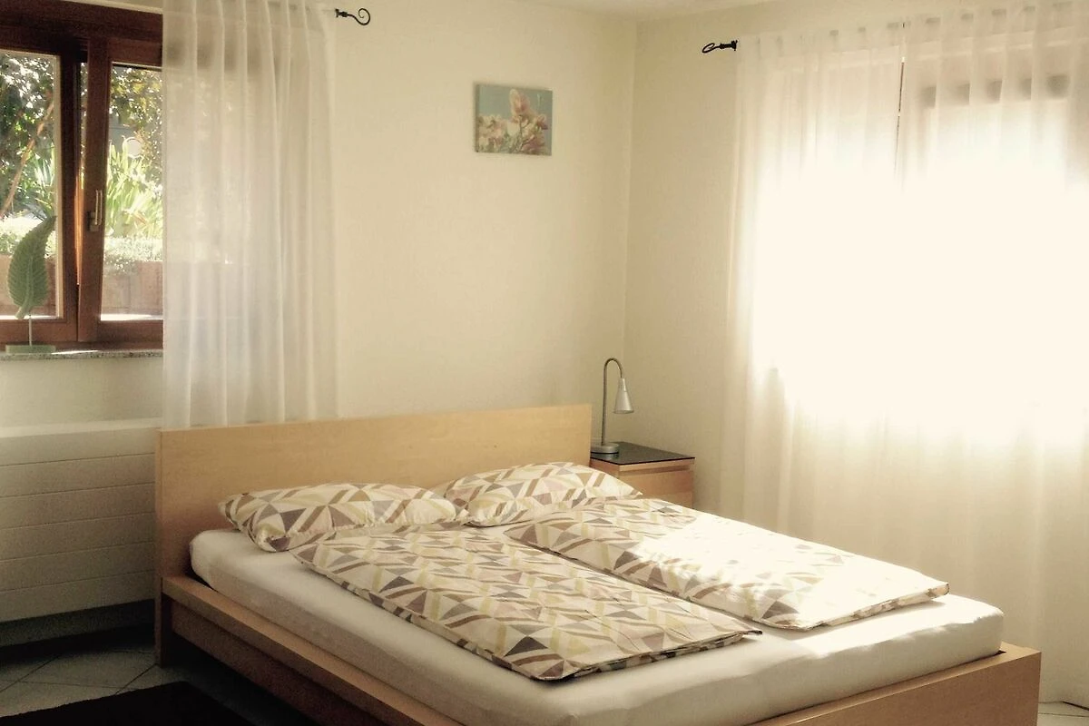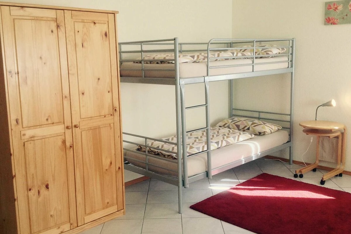 Willkommen in unserem gemütlichen und familienfreundlichen Gästezimmer! Geniessen Sie erholsame Stunden in unserem grosszügigen, lichtdurchfluteten Vierbettzimmer. Auf 26 m² finden Sie alles, was Sie für einen angenehmen Aufenthalt benötigen: ein komfortables Doppelbett sowie ein Etagenbett, ein Fernseher, WLAN, ein Kühlschrank und eine kleine Essgruppe, die Ihnen ein entspanntes Mahl am Tisch ermöglicht. Für Kaffee- und Teeliebhaber stellen wir Ihnen auf Anfrage bei der Anreise eine Kaffeemaschine sowie einen Wasserkocher zur Verfügung. Das separate Badezimmer ist mit einer Dusche, WC, Handtüchern und einem Haartrockner ausgestattet. Wir wünschen Ihnen einen erholsamen Aufenthalt!