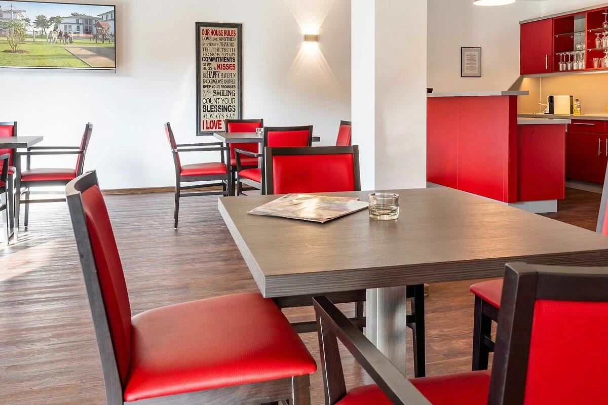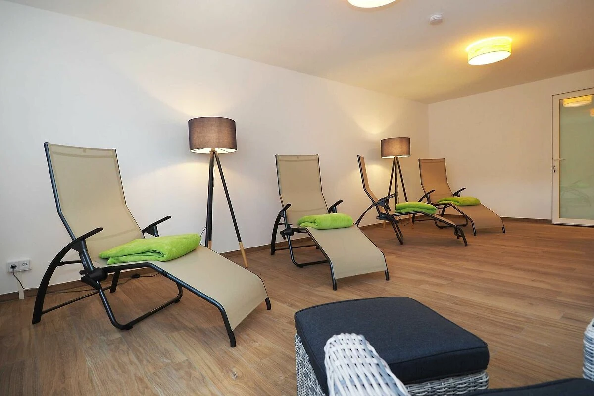 Ihnen steht ein PKW-Stellplatz unter dem Carport kostenfrei zur Verfügung. Weitere Parkplätze in etwa 250 m Entfernung sind vorhanden. Das WLAN-Netz nutzen Sie kostenfrei. Auf Wunsch stellen wir Ihnen einen Hochstuhl und ein Babyreisebett gegen Gebühr zur Verfügung. Im Souterrain des Hauses können Sie die Waschmaschine und den Trockner gegen Gebühr nutzen. Ihre Fahrräder stellen Sie sicher im abschliessbaren Fahrradraum unter (Steckdose für E-Bikes vorhanden). Die Wellness- und Freizeitbereiche (Sauna, Infrarotkabine, Ruheraum, Fitnessraum mit Tischtennisplatte) befinden sich im Souterrain des Hauses 7 und können kostenlos genutzt werden.
