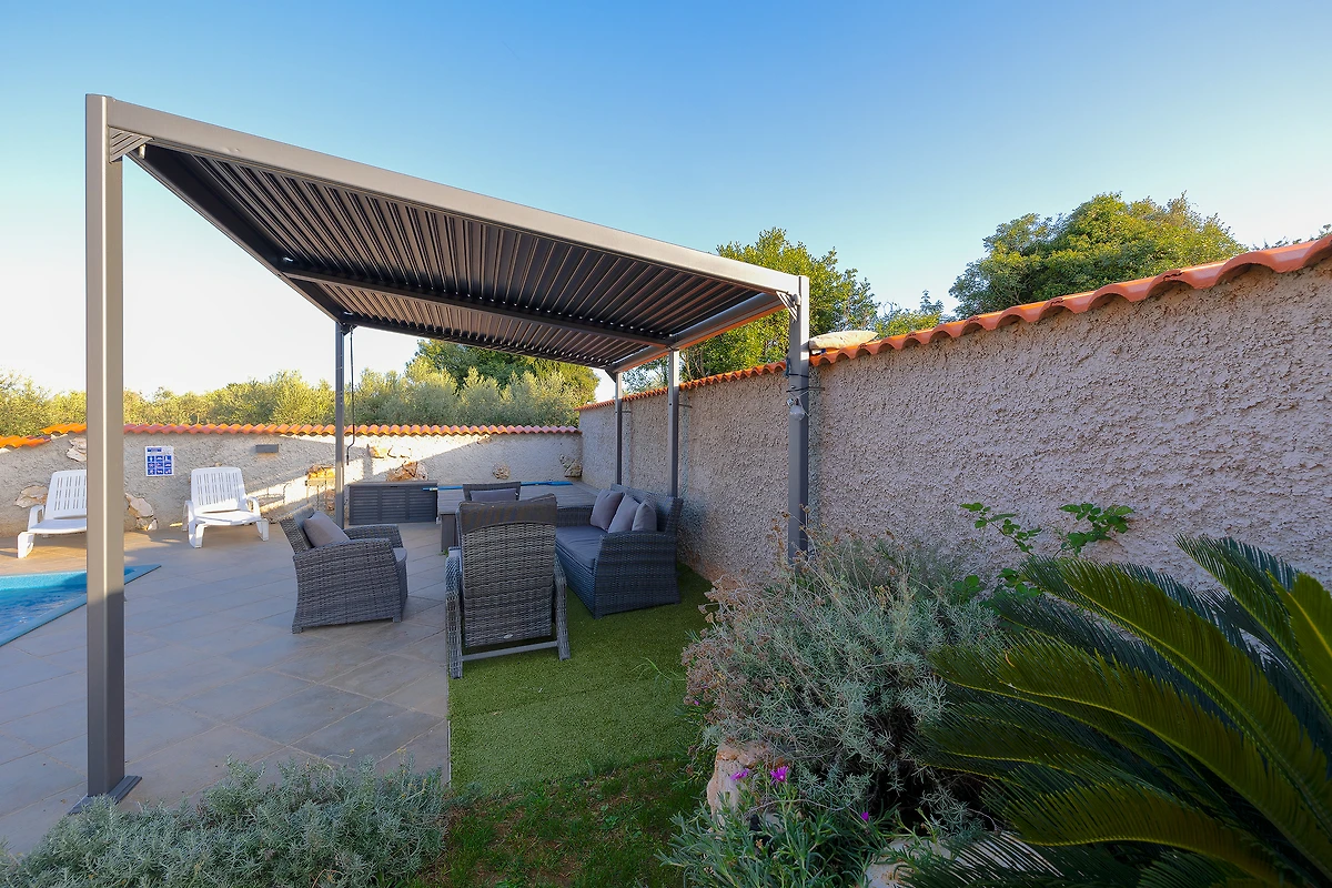 Das schöne Haus Kata für bis zu 6 Gäste befindet sich in einem ruhigen Teil von Liznjan, umgeben von viel Grün. Das letzte Haus auf der Straße bietet Ruhe und Privatsphäre. Es befindet sich auf einem Grundstück von 560m2 und ist komplett eingezäunt. Neben dem Haus befindet sich ein Außenpool mit Liegestühlen. Ein überdachter Pavillon mit Tisch und Bänken befindet sich vor dem Haus. Drei Schlafzimmer mit Doppelbetten, zwei Badezimmer und WC sowie eine voll ausgestattete Küche bieten vollen Komfort für einen Urlaub. Die Nähe der Sehenswürdigkeiten von Ližnjan und Medulin garantiert ein großartiges Urlaubsangebot