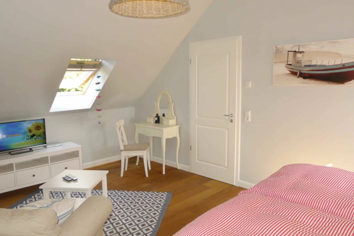 Gelegen in einer Seitenstr, habe Sie Blick auf den Nieblumer Ortsteich, den Sie von Ihrer grossen gemütlichen Dachterrasse sehen können.Nieblum ist das schönste Inseldorf von Föhr mit alten reedegedeckten Friesenhäuser, dem Friesendom und viele kleine Restaurants, Cafe´s und Einkaufsmöglichkeiten direkt im Ort. Alles fussläufig zu erreichen.