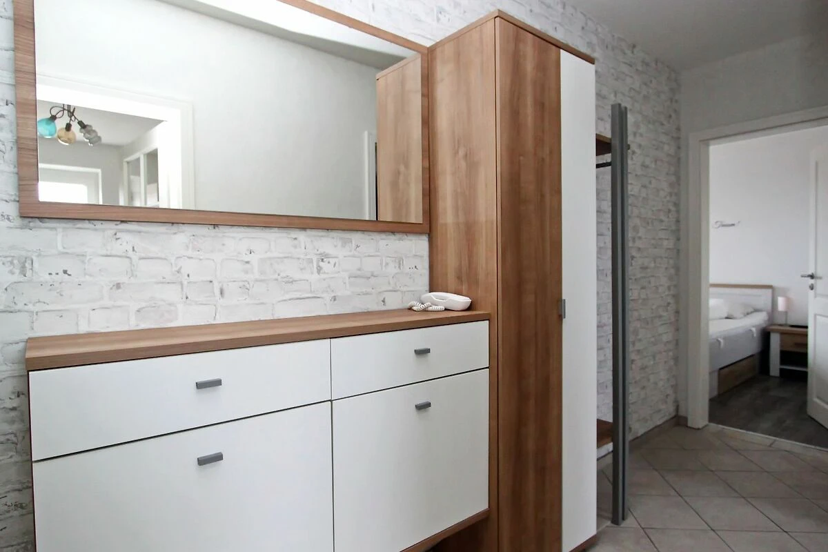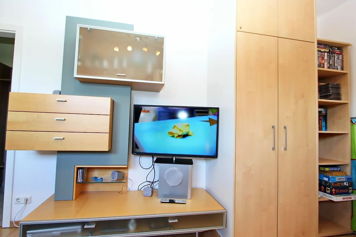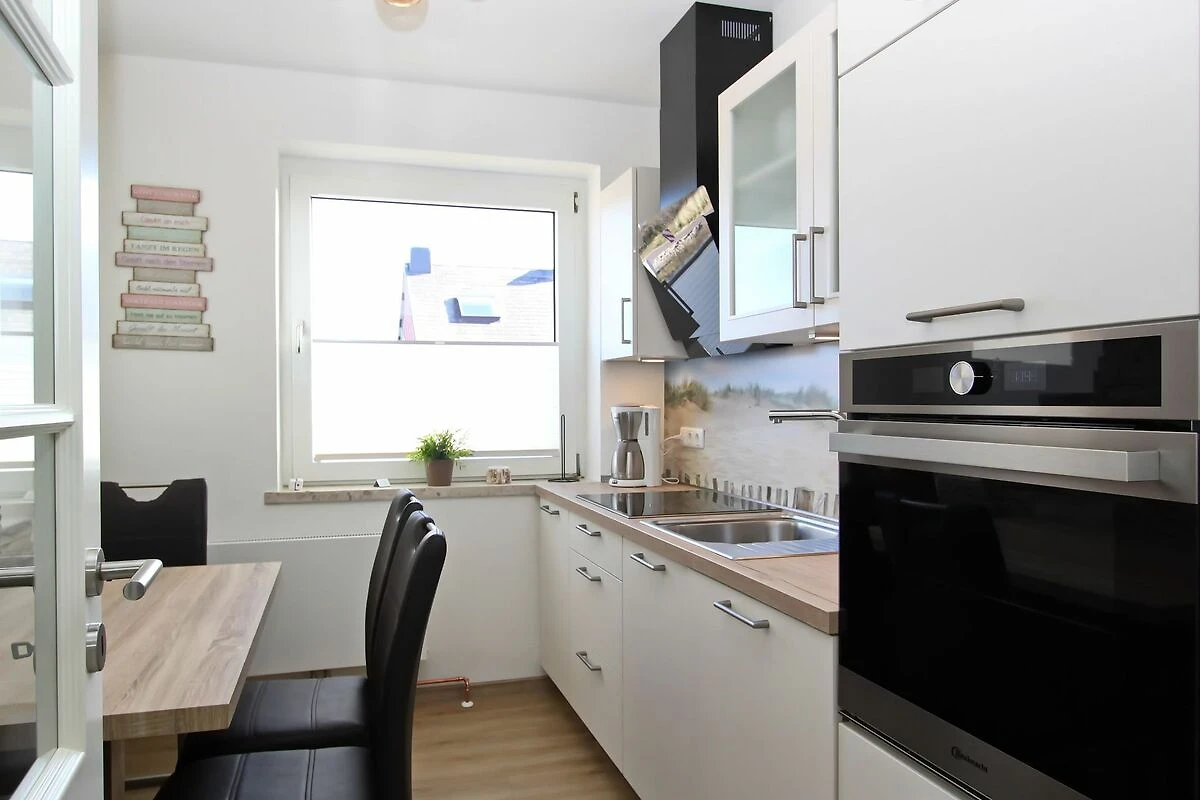 Willkommen auf der Sonnenseite... das 2 Zi.-Appartement Sunnyside-Sylt bietet auf seinen ca. 50 qm Platz für bis zu 4 Personen. Im Wohnraum befindet sich eine gemütliche Couch mit Schlaffunktion, ein Tisch, ein Schrankbett und eine Schrankwand mit Flatscreen-TV, DVD-Player (diverse Filme vorhanden) und einige Gesellschaftsspiele. Das separate Schlafzimmer verfügt über ein Doppelbett mit zwei einzelnen Matratzen und einem Kleiderschrank, der ausreichend Stauraum bietet. Von hier aus gelangen Sie auf den Westbalkon mit Balkonmöbel, von welchem Sie den Sonnenuntergang geniessen können. Die neue Einbauküche lässt keine Wünsche offen und hat neben einem Cerankochfeld, Backofen, Mikrowelle, Geschirrspüler, alle Utensilien, die Sie benötigen, um sich selbst zu versorgen. Ein Esstisch für vier Personen ist ebenfalls vorhanden. Neues Duschbad/WC. Im Flur finden Sie eine Garderobe, Schrank, Spiegel und ein Festnetzanschluss. Das Rauchen ist nur auf dem Balkon erlaubt. Die Tierhaltung ist auf Anfrage gestattet. Es steht Ihnen ein kostenloser Internetanschluss via WLAN zur Verfügung. Vor dem Haus gehört der Parkplatz mit der Nr. 115 zum Objekt. In der Waschküche finden sie eine Münzwaschmaschine und einen -trockner. Änderungen der Ausstattung vorbehalten!