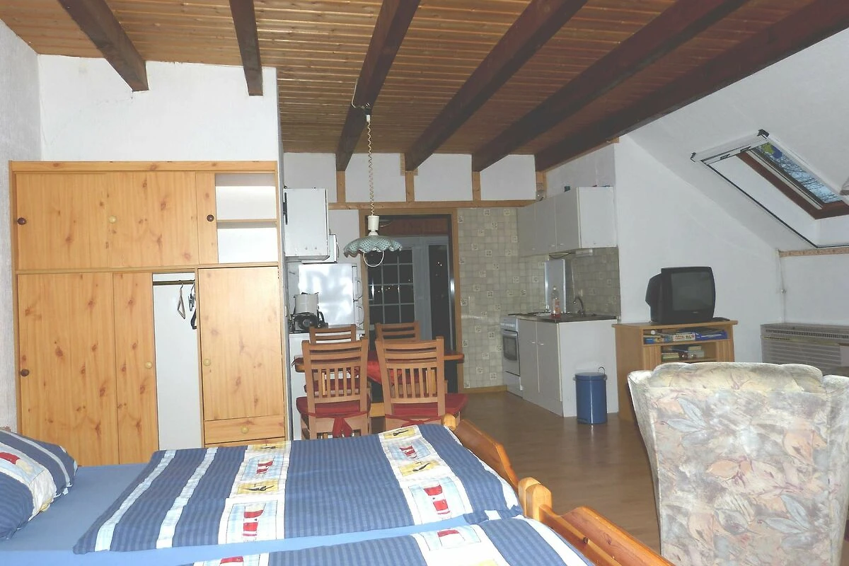 Der Ferienhof war ursprünglich ein Bauernhaus für eine Familie und 8 Kühe. Also ein kleinbäuerliches Anwesen, wie es in alten Zeiten hier viele gegeben hat. Weil sich das Melken immer weniger lohnte, betreiben wir keine Erwerbs-Landwirtschaft mehr. Jetzt sind wir schon lange Rentner, halten sowohl bei uns am anderen Ende des Dorfes, als auch bei der Ferienwohnung: 4 Ponys, Ziegen, Hühner, Gänse, Enten, verschiedene Kleinvögel und machen auf unseren Feldern Heuballen.