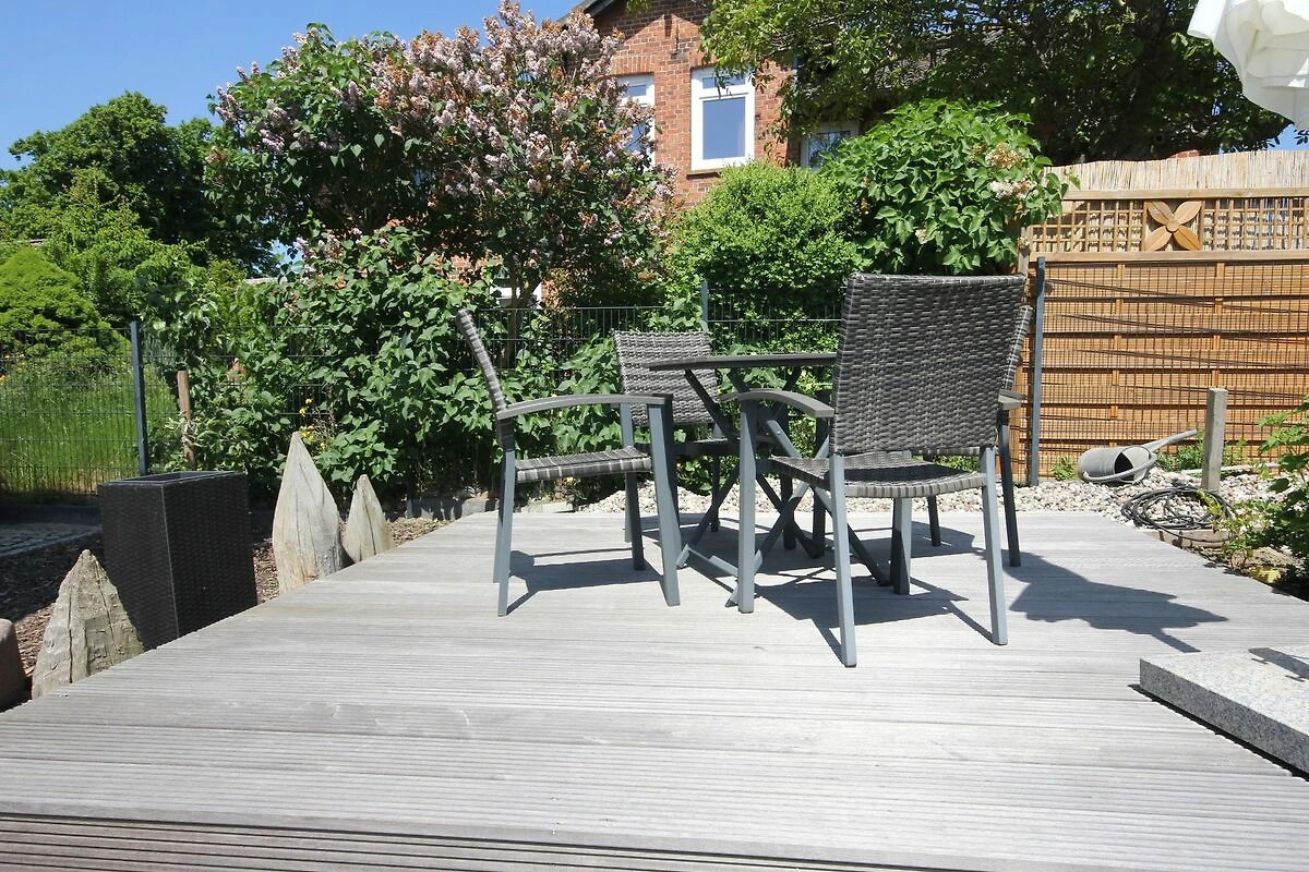Die Ferienwohnung befindet sich im Obergeschoss und ist mit einer Terrasse und Gartenmöbeln im grosszügigen Gartenbereich ausgestattet.