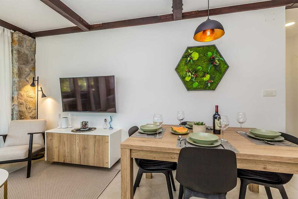 Ferienhaus in Pinezići für 4-6 Personen. Das Haus verfügt über zwei Schlafzimmer mit Doppelbetten, ein Badezimmer, ein Wohnzimmer mit einem Schlafsofa für zwei Personen und eine voll ausgestattete Küche. Alle Zimmer sind klimatisiert. Den Gästen steht ein schöner Garten mit beheiztem Pool, Außendusche, Waschbecken, Grill, Hängematte, Lounge-Terrasse mit Esstisch und Gartenbalkon mit Sitzecke zur Verfügung. Das Haus liegt in der Nähe des Meeres und der Geschäfte. Zwei Parkplätze sind vorhanden.