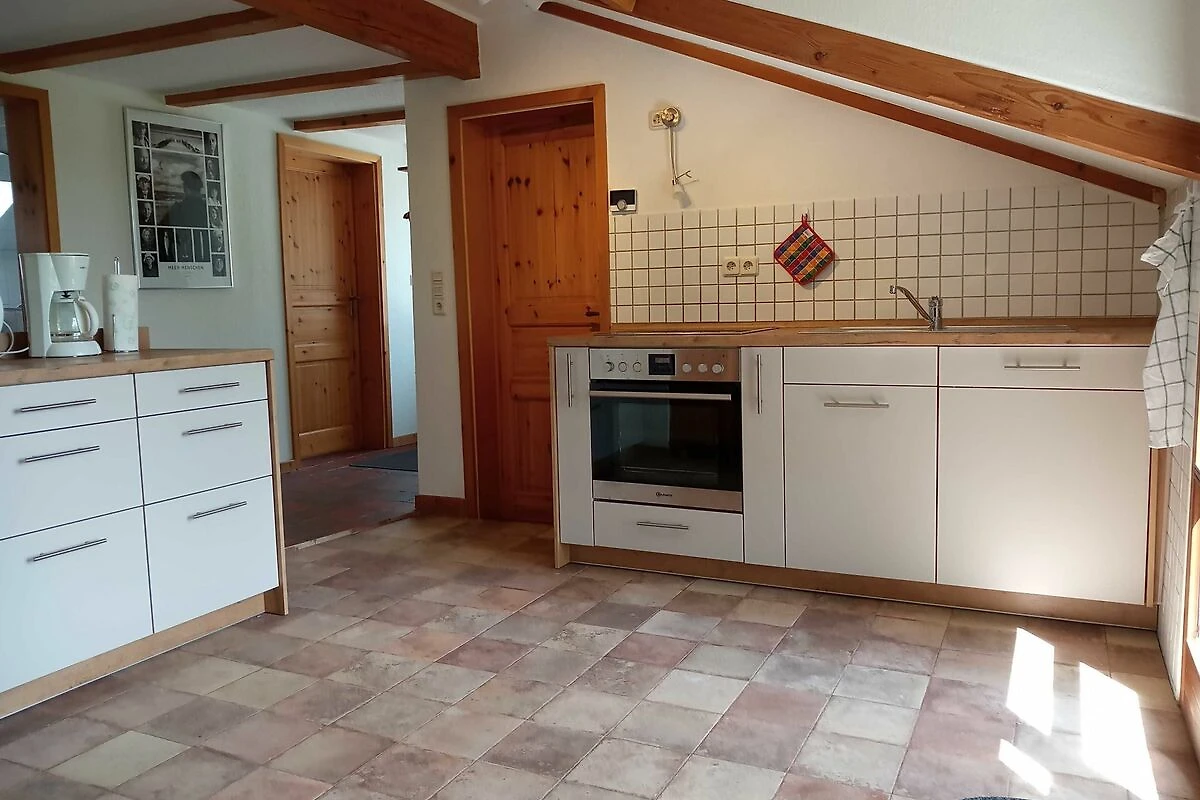 Gemütliches Nichtraucherhaus mit einem Schlafzimmer unten mit Doppelbett (140*200 cm, ohne Fussteil), einem Kinderbett (Reisebett) und Insektenschutz am Fenster sowie einer Schlafempore mit einem Doppelbett (200*200 cm, ohne Fussteil). Das 2020 renovierte Haus verfügt über einen grosszügigen Wohnraum mit Kaminofen, einer vollausgestatteten Küche, einem Bad mit ebenerdiger Dusche, W-LAN, einer windgeschützten Terrasse mit Gartenmöbeln und Grill sowie einen Strandkorb zum Relaxen.Ein abschliessbarer Fahrradraum gehört auch dazu.