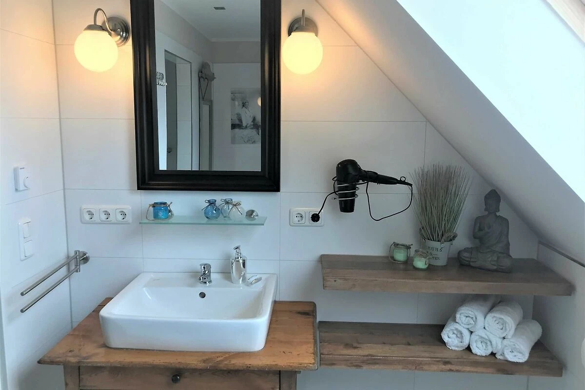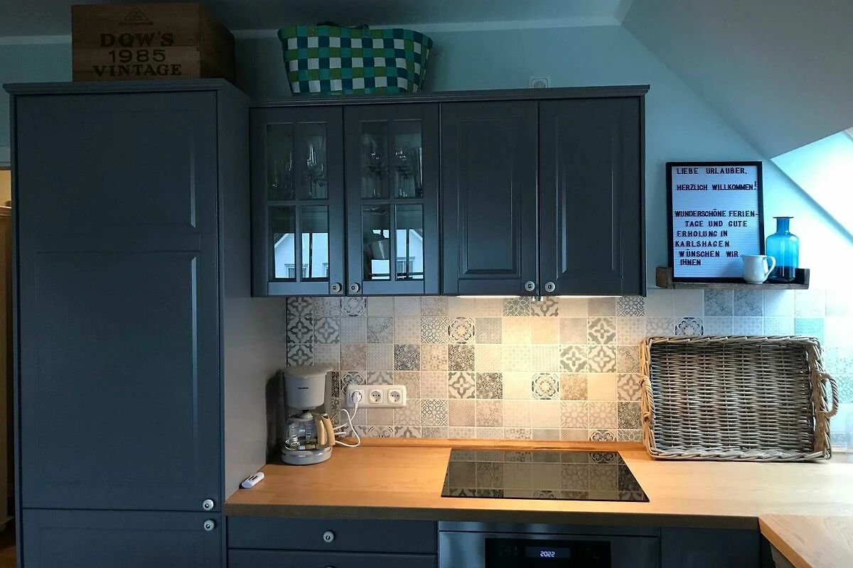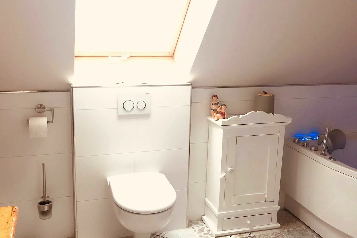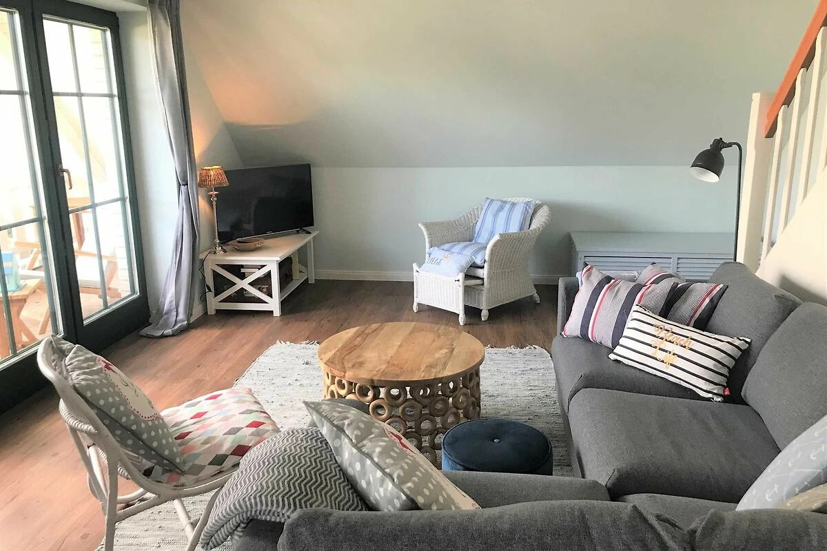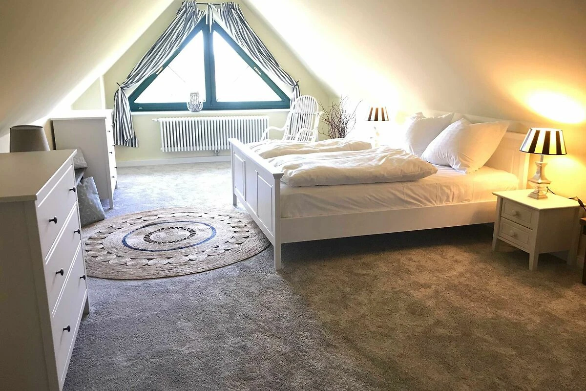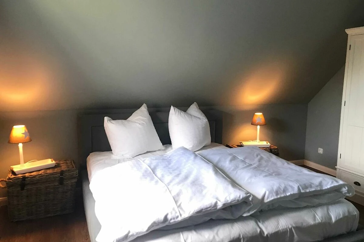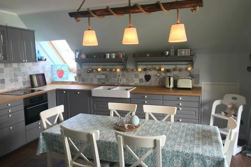 Die Schippers Butz ist das perfekte Domizil für alle, die Wert auf individuelle und liebevolle Einrichtung legen. Sehr persönlich eingerichtet und mit allem Komfort ausgestattet, beginnt hier jeder Urlaubsmorgen mit einem wohligen Gefühl. Familien freuen sich über viel Platz. Für die kleinsten Gäste sind Treppenschutz, Hochstuhl, Babybett mit Matratze (bitte Laken, Decke oder Schlafsack mitbringen), Geschirr usw. vorhanden, ausserdem eine Waschmaschine und zwei PKW-Stellplätze. In der abschliessbaren Fahrradgarage steht ein Bollerwagen für die Strandausflüge bereit. Aber auch Paare geniessen das grosszügige Raumgefühl. Die Wohnung erstreckt sich über zwei Etagen. Im ersten Obergeschoss befinden sich der Eingangsbereich, ein grosszügiger, offener Wohnbereich mit voll ausgestatteter Küche und Balkon mit Elektrogrill und Sonnenliegen, ein Doppelschlafzimmer mit Infrarotsauna und TV, ein Abstellraum und das Bad mit Walk in-Dusche und Wanne. Das Dachgeschoss beherbergt ein weiteres, grosszügiges Doppelschlafzimmer und ein Kinderzimmer mit Einzelbett, Büchern, Filmen, Spielzeug uvm. Hier lässt es sich zu jeder Jahreszeit herrlich erholen. Was gibt es Schöneres, als sich vom Seewind einmal richtig durchpusten zu lassen und sich anschliessend im gemütlichen Zuhause mit Fussbodenheizung, Whirlwanne, Infrarotsauna, viel Urlaubslektüre und Wlan aufzuwärmen und zu entspannen? Alle Kosten für die Nutzung von Wlan, Sauna, Whirlpool, Stellplatz, Waschmaschine usw. sind im Mietpreis bereits enthalten, nur die Kurtaxe ist zahlbar in bar bei Anreise. Herzlich Willkommen auf Usedom!