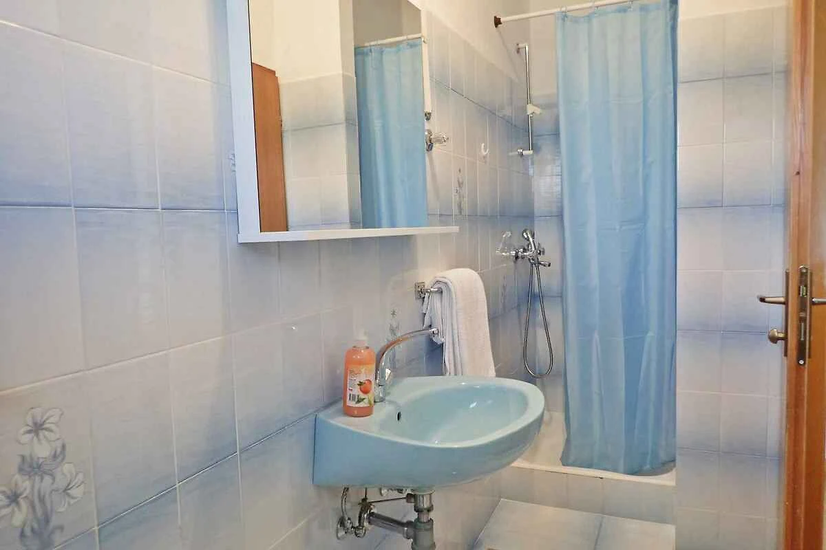 Der Eingang in Ihr Studio befindet sich im Erdgeschoss, ist ebenerdig und führt direkt in den Flur. Schlafzimmer (16 qm) mit 1 Doppelbett, 1 Einzelbett und Zugang zur Terrasse. Kochecke im Vorraum (8 qm) mit Gasherd, Elektroherd, Kühlschrank (Eisfach), Mikrowelle und The kitchen is shared with another room DAL PAR 310 Room 8. Bad mit Dusche, 1 Waschbecken und WC.