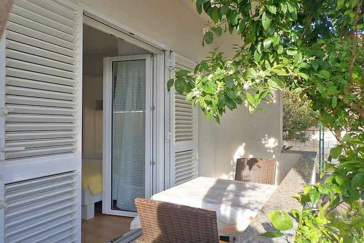 Das Studio befindet sich in einem 1998 erbauten Apartementhaus, wurde im Jahr 2019 renoviert und ist zweckmässig eingerichtet. Das Grundstück liegt in einem Wohngebiet. Auch wegen des Ausblicks vom Grundstück auf das Meer und der ruhigen und sonnigen Lage am Wasser ist das Domizil beliebt. Zur gemeinsamen Nutzung stehen zur Verfügung: Grillmöglichkeit, Terrasse und Gartenmöbel. Gemeinschaftsküche.