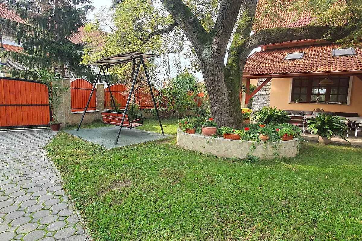 Balatonberény. Die Ferienwohnung befindet sich auf einem 300 qm grossen, geschlossenen Gartengrundstück mit Wiese, Blumen, Sträuchern und Bäumen, von einem Zaun begrenzt. Der Vermieter wohnt in einem separaten Gebäude auf dem Grundstück. BALBER133 (4P) und BALBER142 (4P) befinden sich auch in demselben Haus. Die Zufahrt erfolgt direkt von der Hauptstrasse (asphaltiert). Parkplatz (für 2 Pkws) auf dem Grundstück.