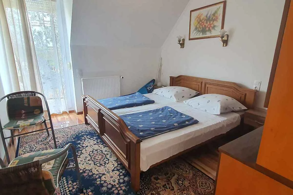Balatonberény. Die Ferienwohnung befindet sich auf einem 300 qm grossen, geschlossenen Gartengrundstück mit Wiese, Blumen, Sträuchern und Bäumen, von einem Zaun begrenzt. Der Vermieter wohnt in einem separaten Gebäude auf dem Grundstück. BALBER132 (6P) und BALBER142 (4P) befinden sich in demselben Haus. Die Zufahrt erfolgt direkt von der Hauptstrasse (asphaltiert). Parkplatz (für 1 Pkw) auf dem Grundstück.