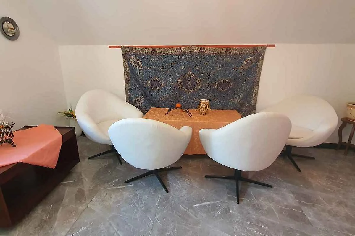 Die Ferienwohnung befindet sich in einem Apartementhaus, wurde im Jahr 2019 renoviert und ist modern eingerichtet. Das Grundstück liegt in belebter Umgebung, im Ortszentrum. Zur gemeinsamen Nutzung stehen zur Verfügung: Grillmöglichkeit, Terrasse, Pavillon, Gartenmöbel, Hollywood-Schaukel und Hof.