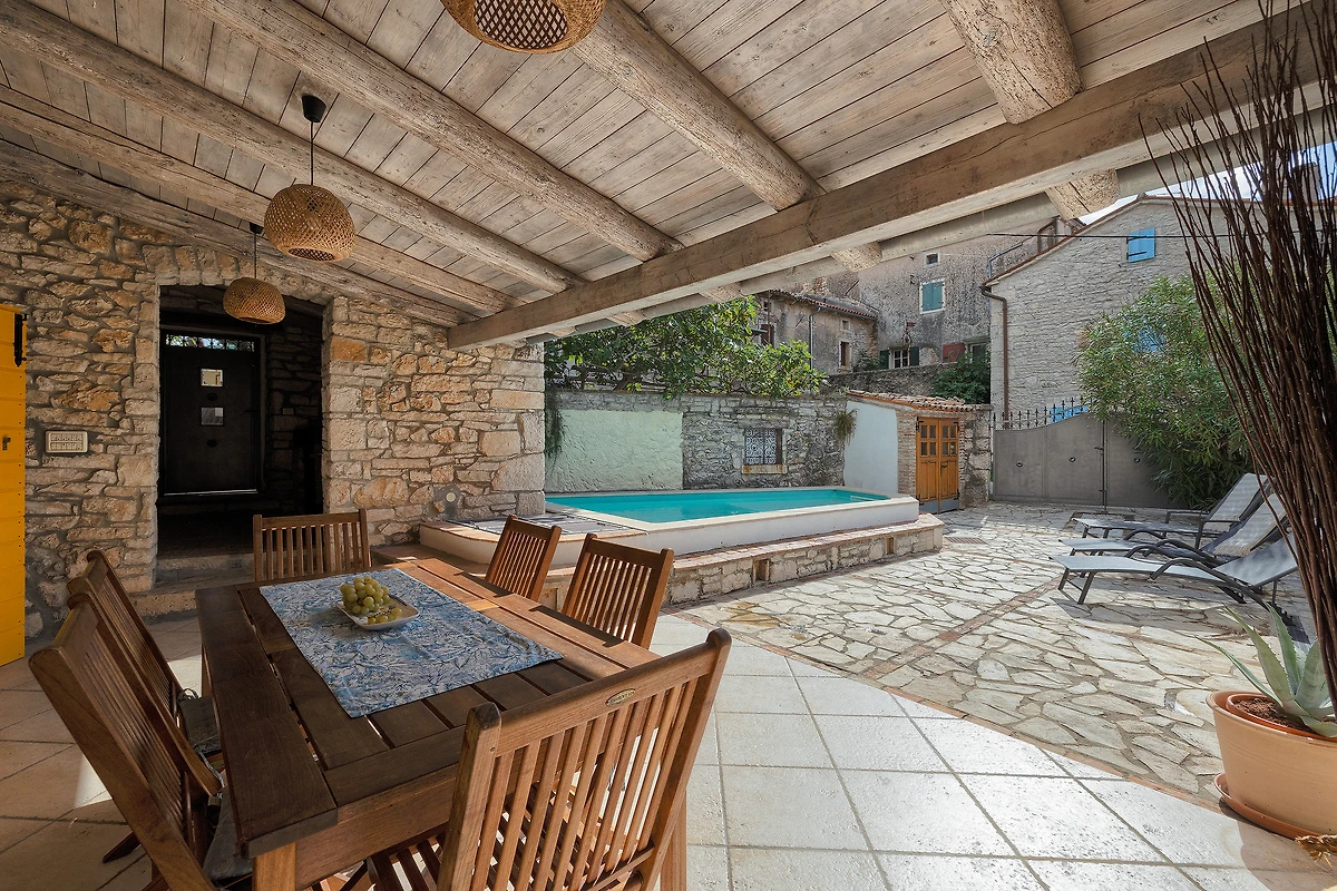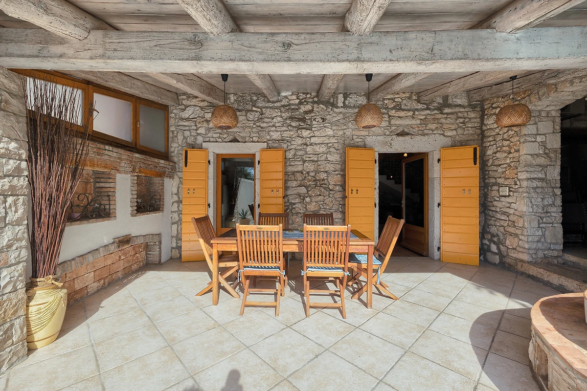 Willkommen in dieser wunderschönen Villa aus Stein und Holz, gelegen in der Nähe von Barban, wo Komfort auf zeitlosen Charme trifft – die ideale Umgebung für Naturliebhaber und Ruhesuchende. Dieses wunderschön gestaltete Haus vereint rustikale Eleganz mit modernen Annehmlichkeiten und bietet eine ruhige Zuflucht, die perfekt für einen unvergesslichen Urlaub ist.