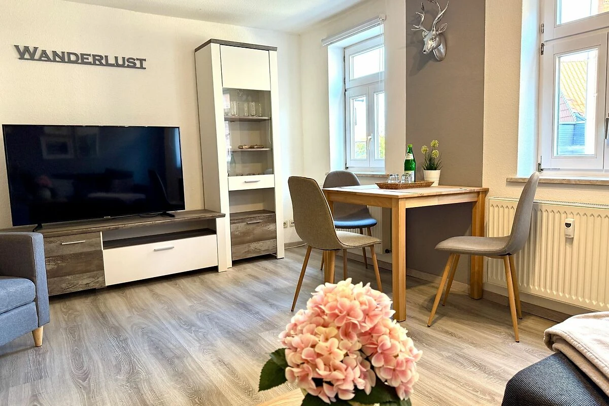 Unsere drei Ferienwohnungen Morgentau, Wanderlust und Harztraum befinden sich in einem liebevoll modernisierten Fachwerkhaus aus dem Jahre 1880 direkt an der historischen Stadtmauer im Herzen der Blankenburger Altstadt. Sie sind der perfekte Ausgangspunkt für unvergessliche Urlaubstage im Harz. Ob beim Wandern auf den Spuren der Harzer Wandernadel, mit dem Fahrrad durch die abwechslungsreiche Landschaft, entspannt mit dem E-Bike die Höhenmeter meistern oder mit dem Motorrad die kurvenreichen Panoramastrassen geniessen von hier starten Sie direkt in Ihr persönliches Harzabenteuer.Komfort, der überzeugt - alle Ferienwohnungen sind mit voll ausgestatteten Küchen eingerichtet ideal für Selbstversorger. Handtücher und Bettwäsche stellen wir selbstverständlich bereit. Für Familien mit Kleinkindern können wir jederzeit ein Babybett oder einen Kinderhochstuhl mit Zubehör zur Verfügung stellen.Für unsere Gäste stehen ausserdem eigene Parkplätze direkt vor dem Haus zur Verfügung und für Motorradfahrer auch eine Garage, ein Pluspunkt gerade im Altstadtkern von Blankenburg.