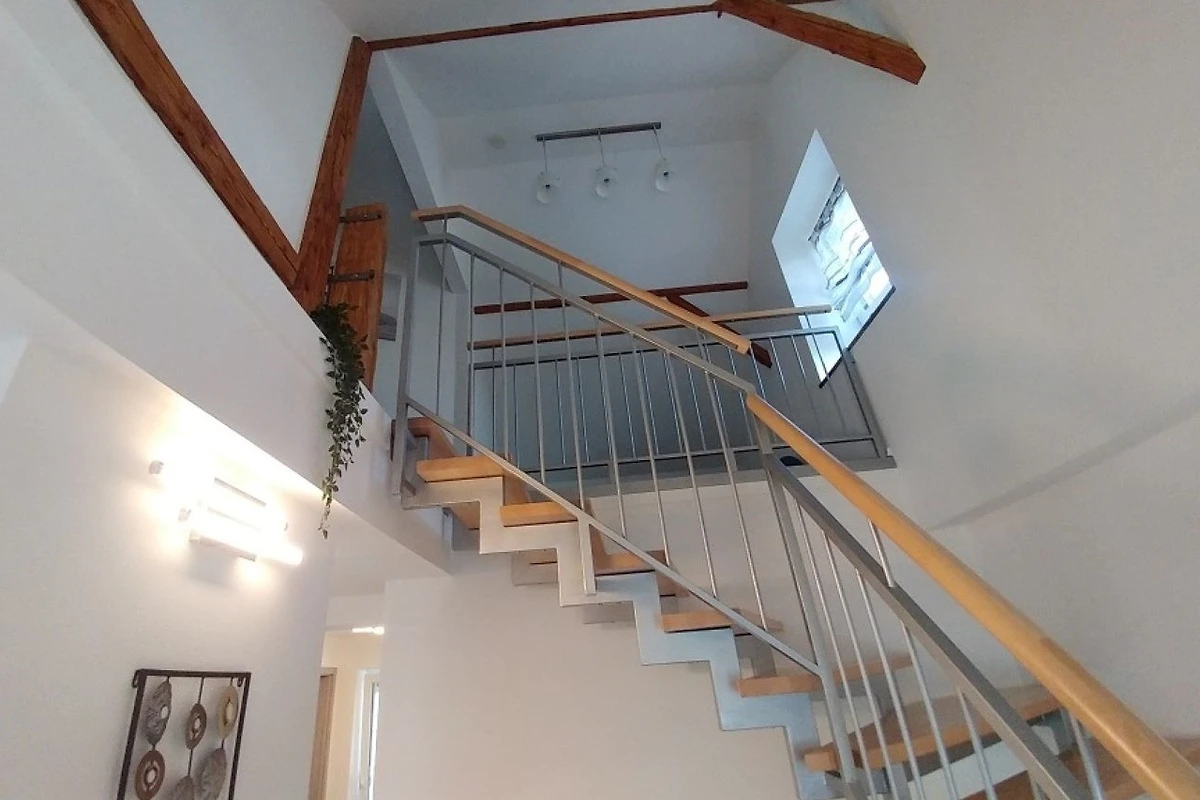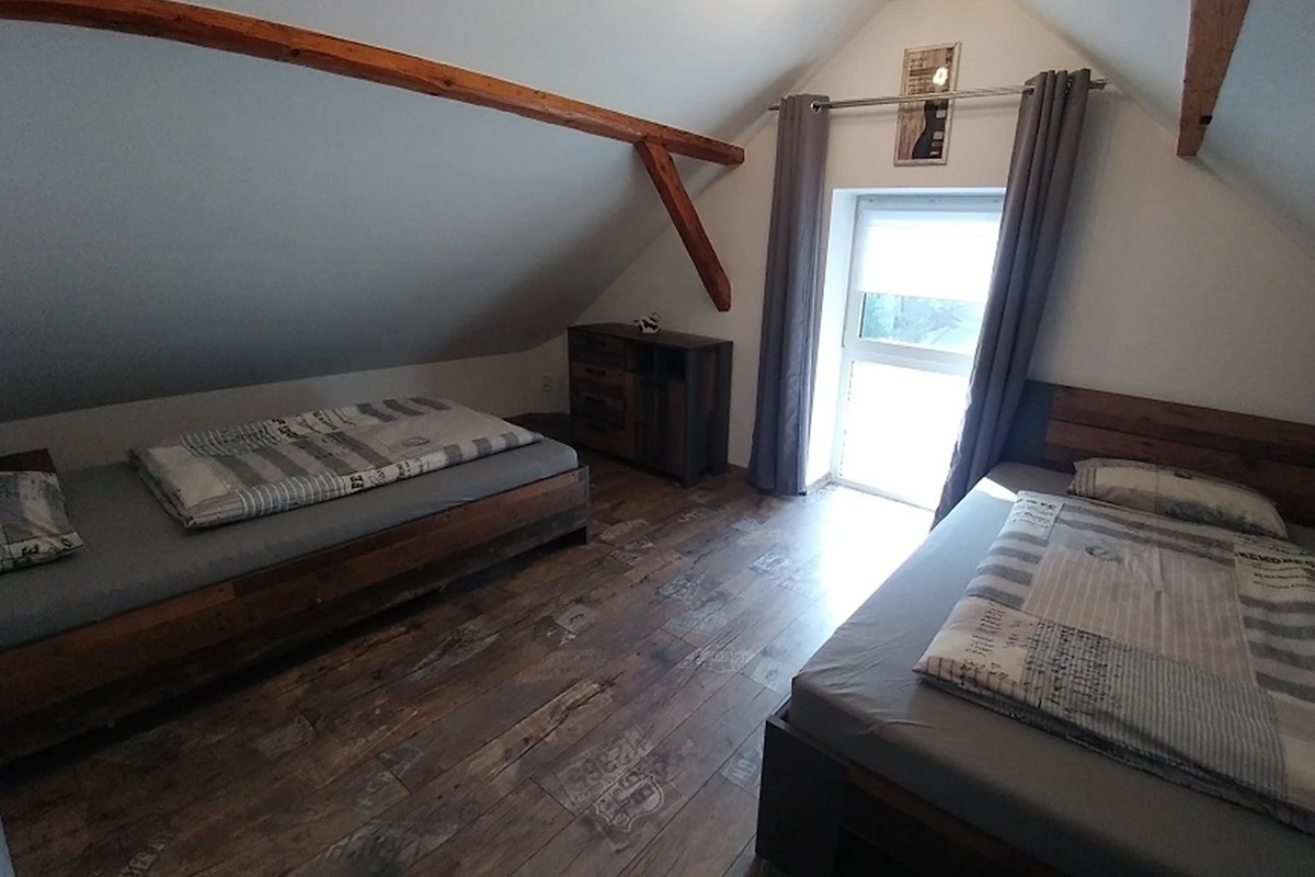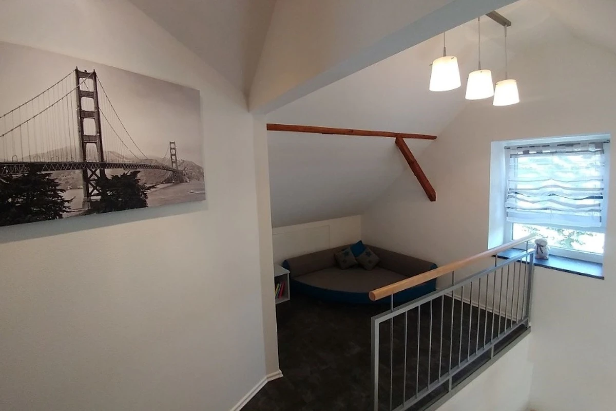 In der 2 Etage befindet sich ein weiteres Schlafzimmer mit einem Einzelbett 1,2m x 2m und einem französischen Doppelbett 1,4m x 2m und eine Chill-Ecke mit 2 Zustellbetten wenn es mal mehr Personen sein sollten.