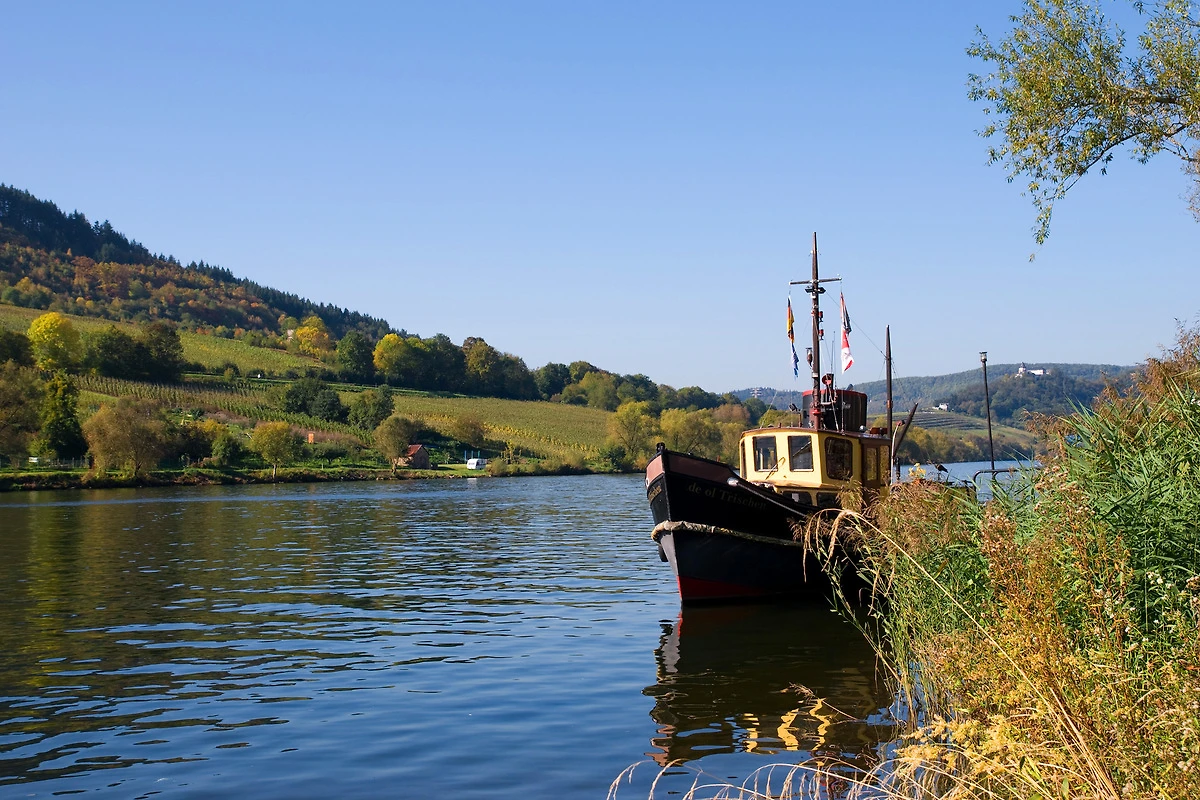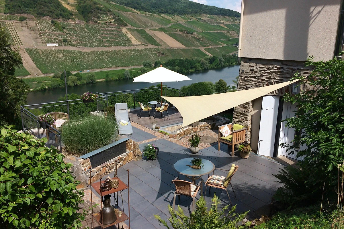 Unsere Ferienwohnung liegt am beliebten Moselsteig-Wanderweg, unterhalb der Marienburg bei Zell und bietet Ihnen einen zweifachen Blick auf die Mosel.
