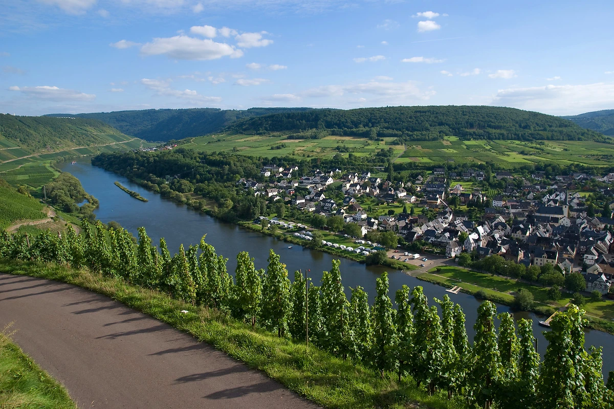 Zell liegt an der schönen Mittelmosel, zentral zwischen Trier und Koblenz. Die Weinlage "Zeller Schwarze Katz" machte den Ort über die Grenzen hinaus bekannt und ist auch heute noch ein Aushängschild der Stadt. Die romantische Landschaft ist wie geschaffen für Wanderer und Radfahrer.