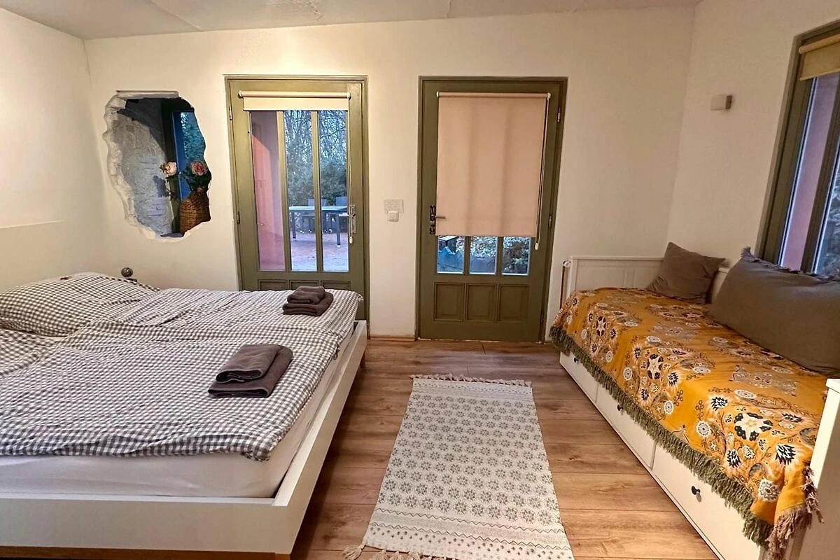 Schlafzimmer mit Doppelbett und einem Einzelbett