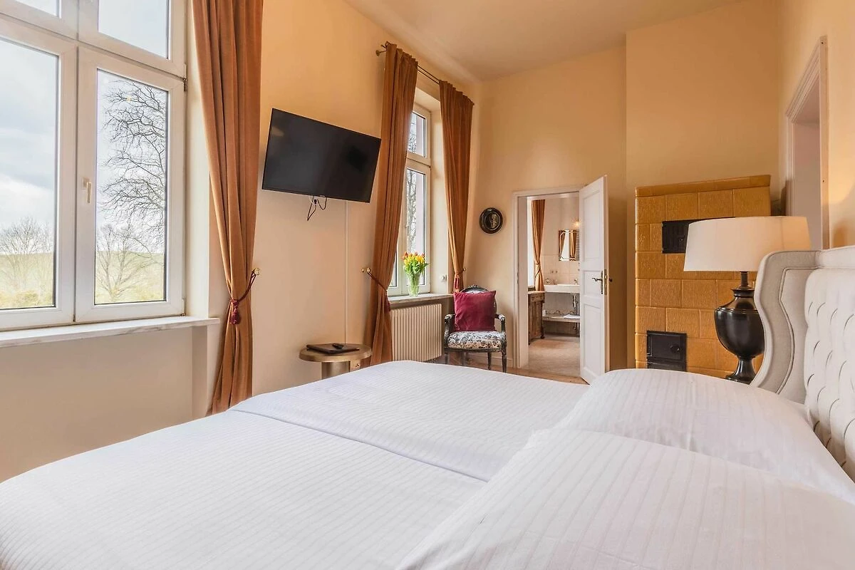 Die gemütlichen Doppelzimmer befinden sich in der ersten Etage unseres Gutsschlosses. Sie sind mit 1,40m bis 1,80m breiten Betten und einer kleinen Sitzecke ausgestattet.