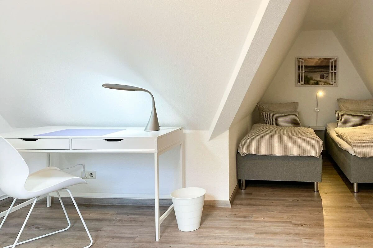 Die Ferienwohnung Kormoran 19 empfängt Sie mit einer harmonischen Kombination aus modernem Komfort und maritimem Ambiente. Der lichtdurchflutete Wohnbereich lädt zu entspannten Stunden ein, während die voll ausgestattete Küche keine Wünsche offenlässt. Geniessen Sie Ihre Mahlzeiten auf dem grosszügigen Balkon mit eigenem Strandkorb und lassen Sie den Tag in gemütlicher Atmosphäre ausklingen. Die modernen Badezimmer und die komfortablen Schlafzimmer bieten zusätzlichen Komfort für erholsame Nächte.