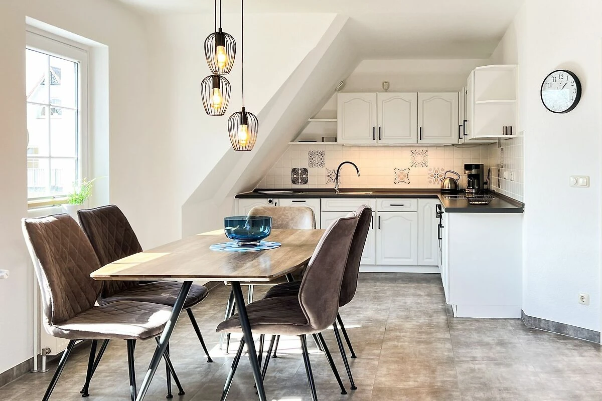 Willkommen in der Ferienwohnung Kormoran 19 in Zingst! Diese charmante Unterkunft bietet auf 86 m² Platz für bis zu 5 Personen und verbindet modernen Komfort mit maritimem Flair.