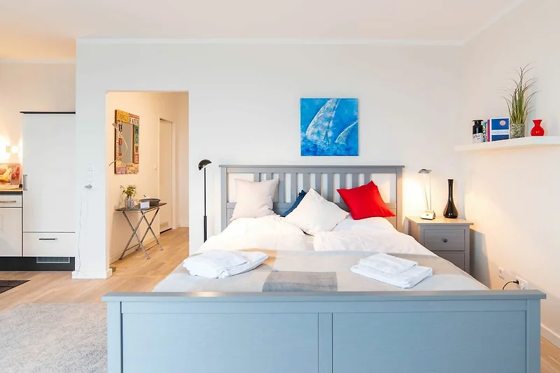 Die frisch renovierte Ferienwohnung wurde geschmackvoll für Sie eingerichtet. Das Apartment befindet sich in der 3. Etage (ohne Fahrstuhl) direkt im Olympiazentrum Schilksee.