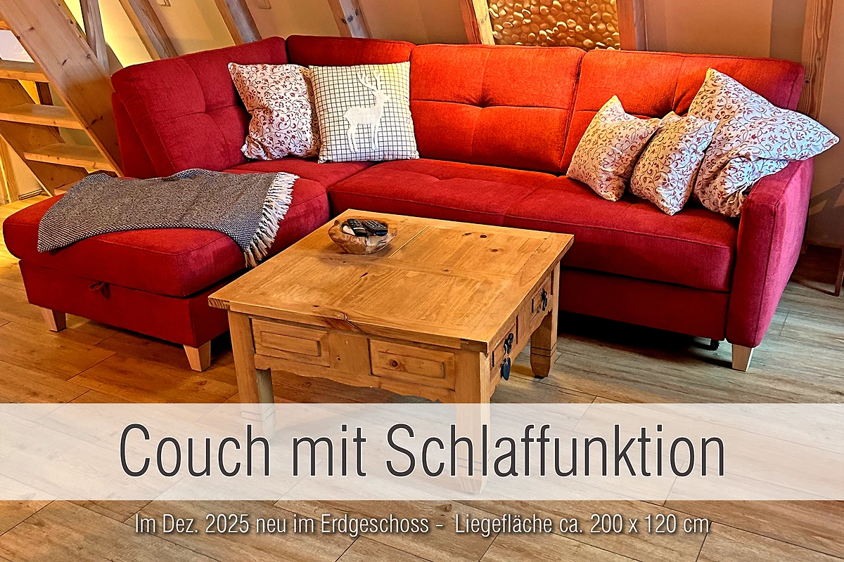 Familienurlaub oder romantischer Paarurlaub in einem eigenen kleinen Haus mit Hüttenfeeling. Kaminofen, Dachschrägen, alte Balken und eine raffinierte indirekte Beleuchtung machen die Hütte zu einem gemütlichen Rückzugsort.