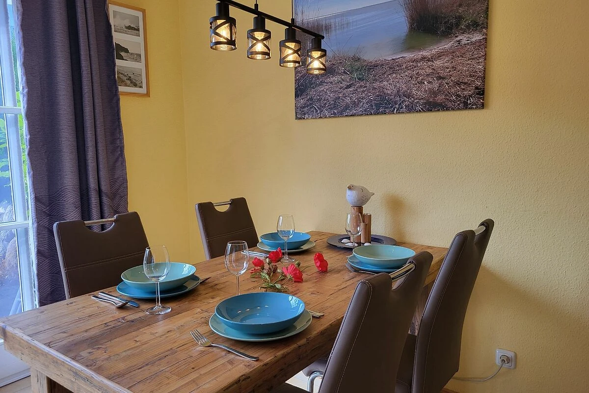 kleines gemütliches Reihenendhaus in ruhiger und zentraler Lage im Ortskern von Wustrow. Die Terrasse mit dem Strandkorb und Gartenmöbeln und Liegen laden zum Entspannen und relaxen ein.Das Ferienhaus hat 85 m² Wohnfläche und ist für 2 bis 4 Personen geeignet . Nur ca. 800 m von Strand und Bodden entfernt Das Ferienhaus hat einen offenen Wohnbereich mit Kaminofen und offener Küchenzeile, die zum gemeinsamen kochen einlädt. Im Erdgeschoss befindet sich ein barrierefreies Badezimmer mit ebenerdiger Dusche und im Obergeschoss befindet sich ein weiteres Badezimmer mit Badewanne.