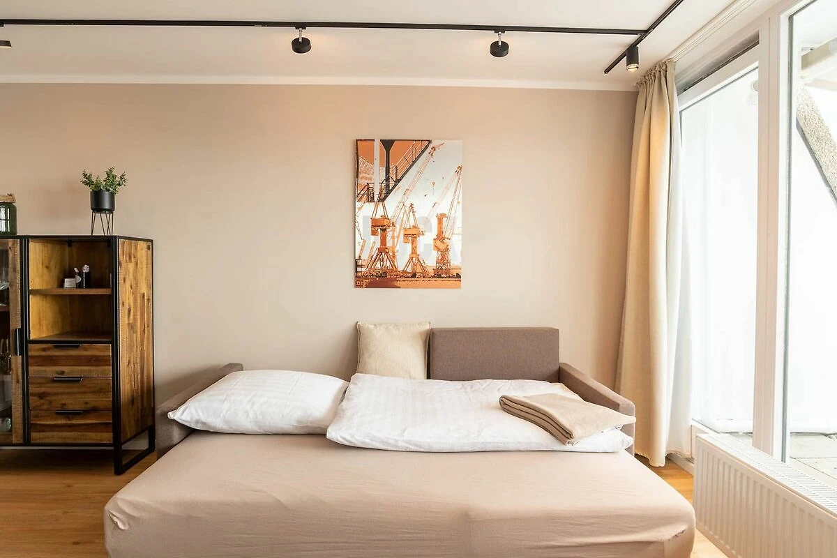 Wohnen am Meer bekommt in diesem Apartment eine neue Bedeutung. Die frisch renovierte Ferienwohnung im Industrial-Stil bietet für bis zu 3 Personen genügend Platz zum Entspannen. Neben dem Einsatz von rauem Holz mit Patina und kühlem Stahl der Möbel, komplettieren trendige Accessoires den Style eines urbanen Loft-Charakters.