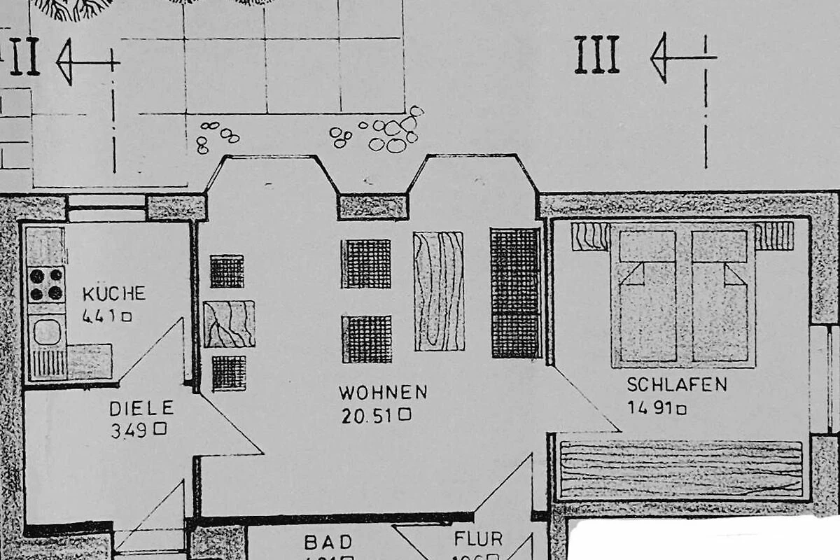 Vom Wohnzimmer aus kommen Sie über eine Balkontür hinaus in den Garten. Hier wartet eine kleine Terrasse auf Sie.