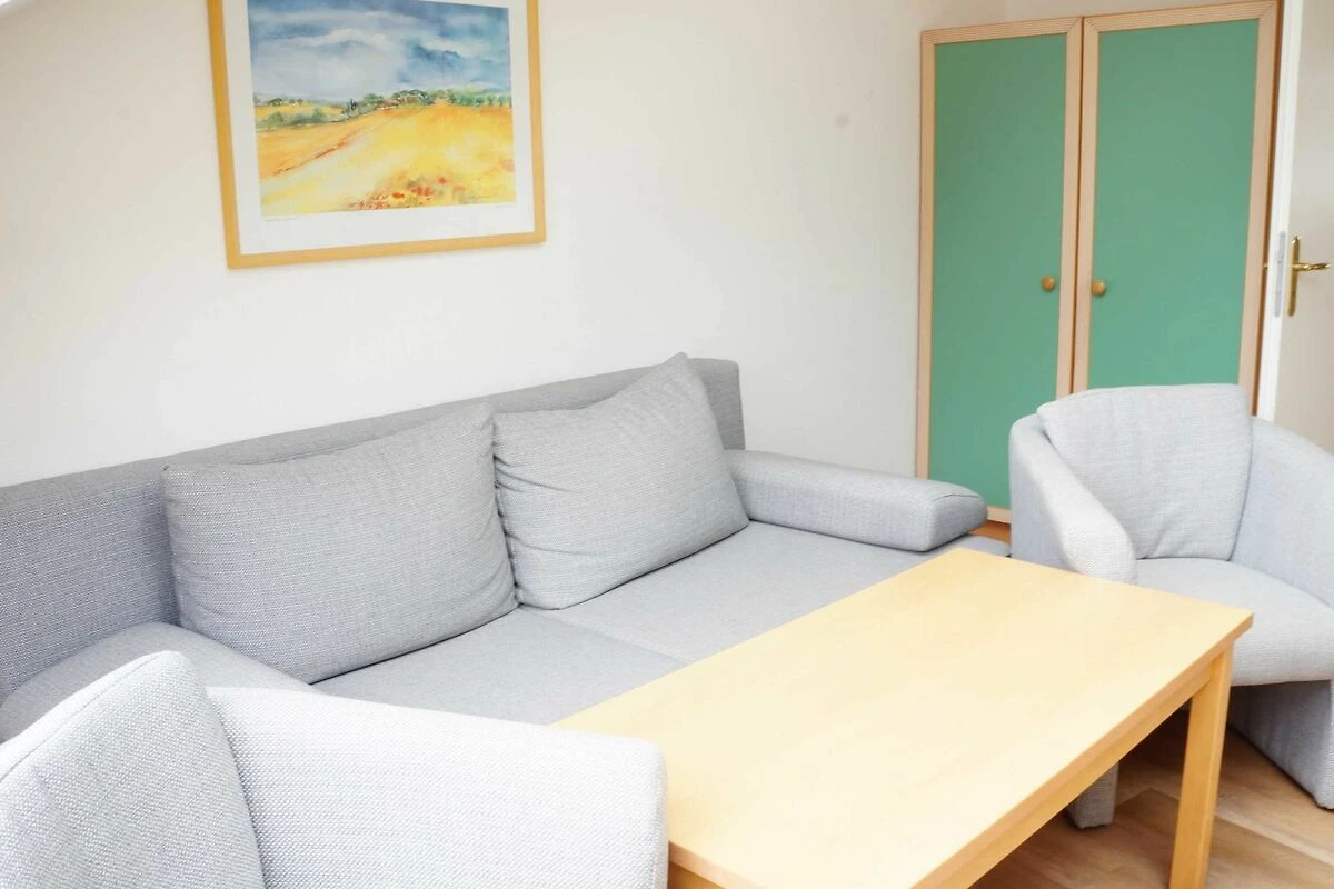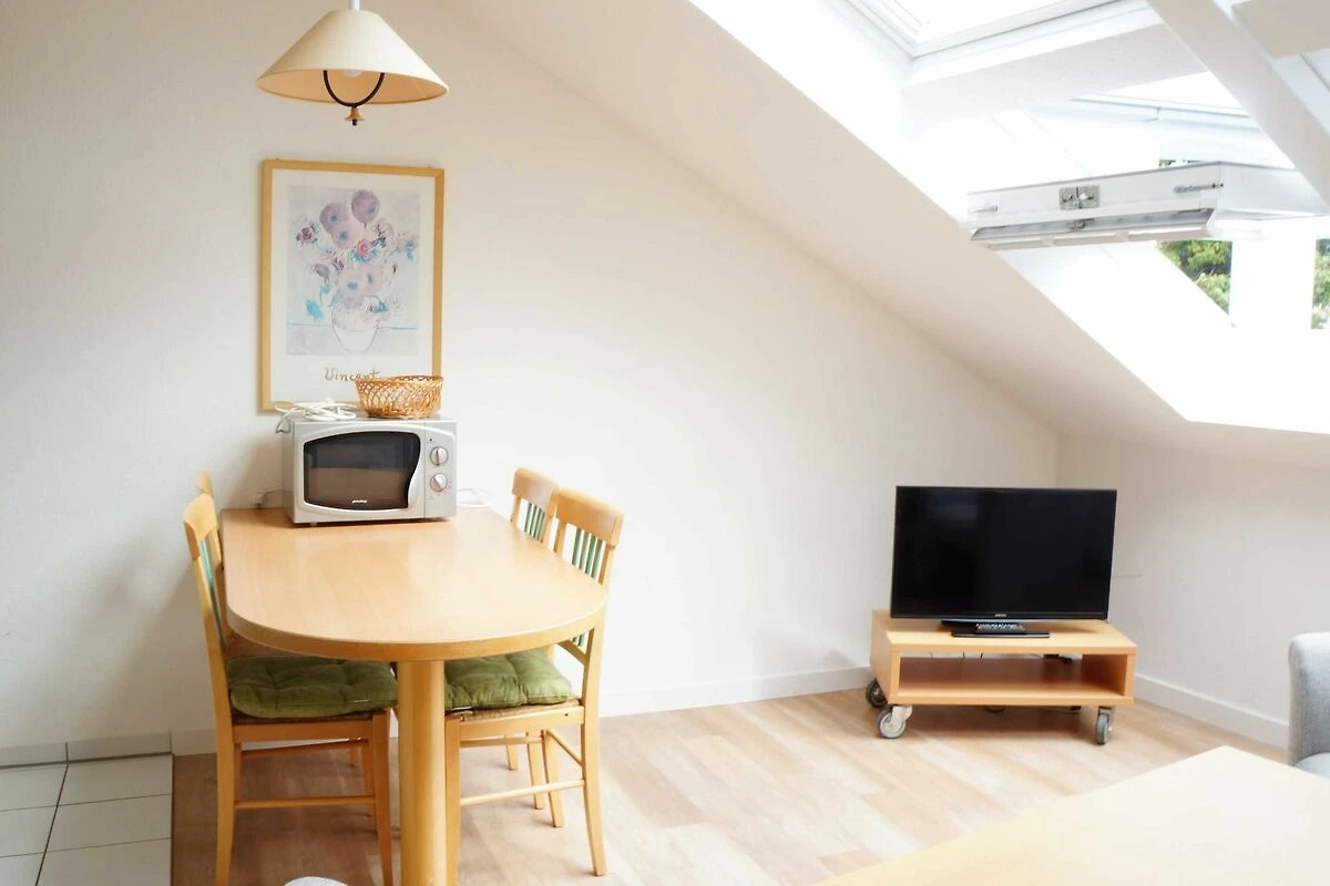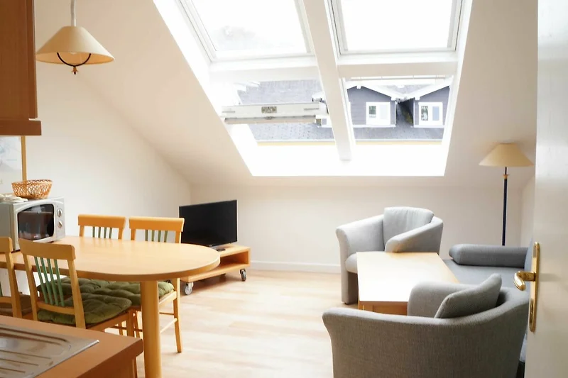 Das modern ausgestattete 2-Raum-Nichtraucher-Appartement im Dachgeschoss ist 34 m² gross.