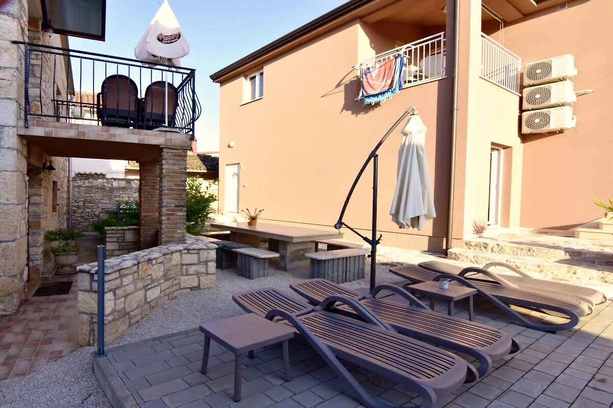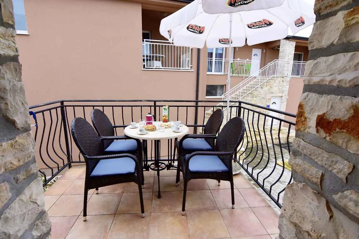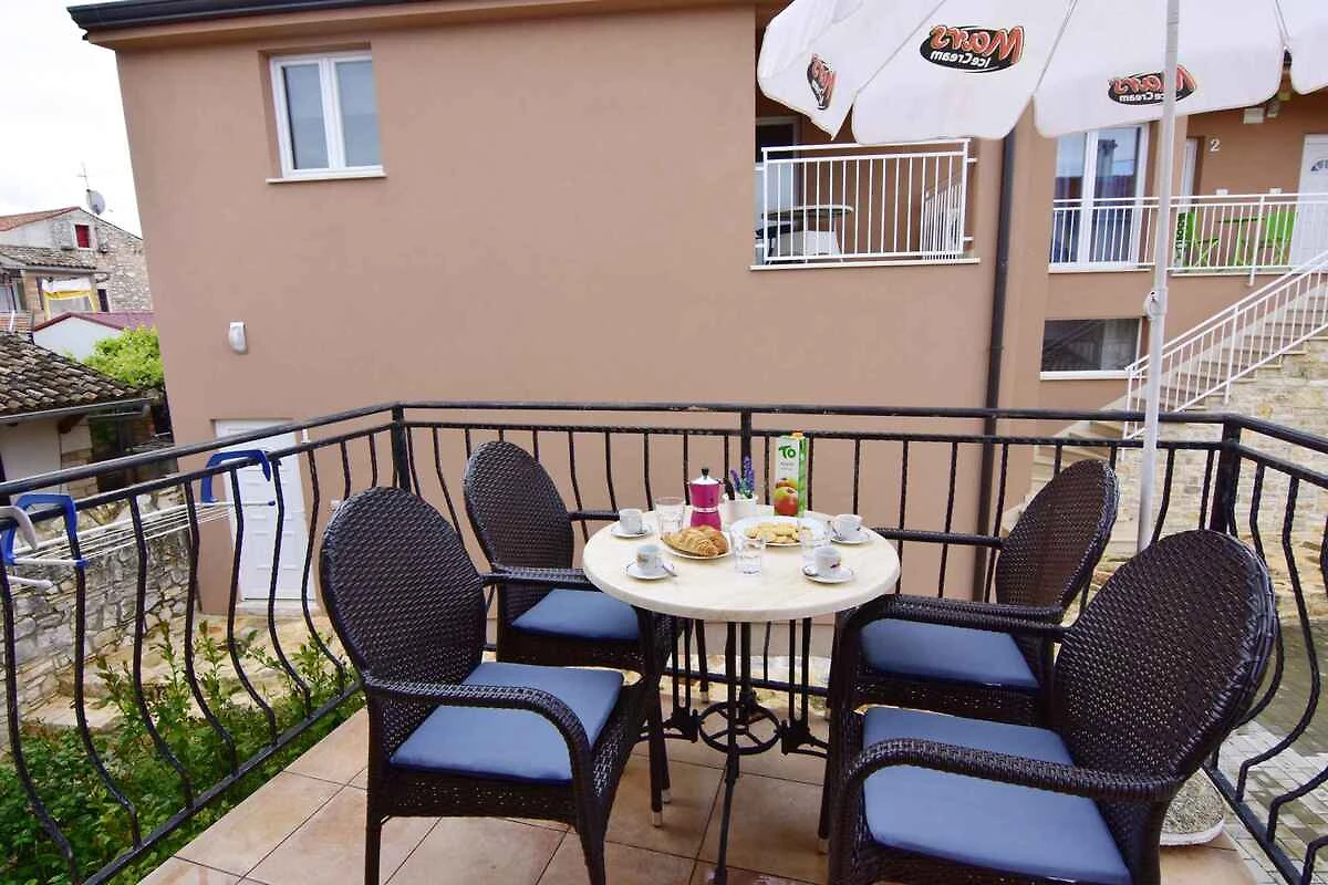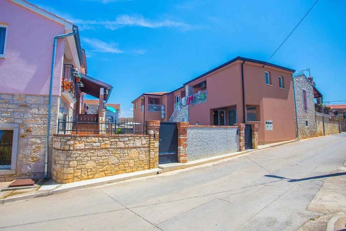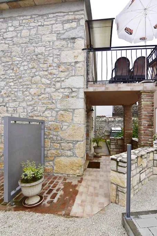 Tar/Poreč. Die Ferienwohnung befindet sich auf einem geschlossenen Grundstück mit Blumen und Bäumen, von einem Zaun begrenzt. Der Vermieter wohnt nicht im Haus oder auf dem Grundstück. Die Zufahrt erfolgt über eine Nebenstrasse (asphaltiert). Parkplatz auf dem Grundstück, der Strasse vor dem Haus und einem Parkplatz im Ort (Entfernung 50 m).