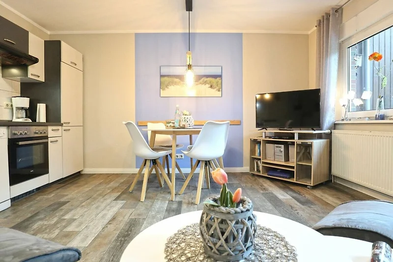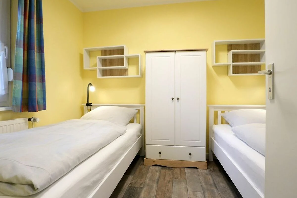 Das modernisierte Ferien Reihenhaus ? Urlauberdorf 41C - mit Süd -West Terrasse bietet auf 54qm familienfreundliches Wohnen zum Wohlfühlen. Der komfortabel und gemütlich eingerichtete Wohn-/Essbereich ist mit einem Sofa, Fernseher, DVD-Player, Musikanlage, WLAN und einem Esstisch ausgestattet ? ideal für entspannte Stunden mit der Familie. Zwei separate Schlafzimmer sowie ein Duschbad und ein Gäste-WC sorgen für Komfort und Privatsphäre. Die integrierte Küchenzeile ist vollständig ausgestattet mit Herd, Backofen, Geschirrspüler, Mikrowelle, Kaffeemaschine, Wasserkocher, Toaster u.v.m. Erholung finden Sie auf der saisonal möblierten Süd -West Terrasse. Im Erdgeschoss befinden sich ein Schlafzimmer mit zwei Einzelbetten und Kleiderschrank sowie ein Duschbad mit WC und kostenfreier Waschmaschinen Nutzung. Über eine Treppe gelangen Sie ins Obergeschoss mit einem weiteren Schlafzimmer mit Doppelbett, Kleiderschrank, 2. Fernseher, Sitzgelegenheit. Ein Gäste-WC ist in dieser oberen Etage ebenso vorhanden. Familienfreundlich gehören ein Kinderhochstuhl, Kinderbett, Spielzeug sowie ein Bollerwagen zur Ausstattung. Das Nichtraucherhaus ist für bis zu 4 Personen ideal geeignet. Ein PKW-Stellplatz befindet sich kostenfrei direkt am Haus. Weitere PKW-Stellplätze stehen in der Umgebung im öffentlichen Bereich kostenpflichtig zur Verfügung. Haustiere nicht erlaubt. Das Laden von Elektro und Hybridfahrzeugen ist nicht gestattet. Hiervon sind Akkus von E-Bikes & Pedelecs (unter Aufsicht) ausgenommen.