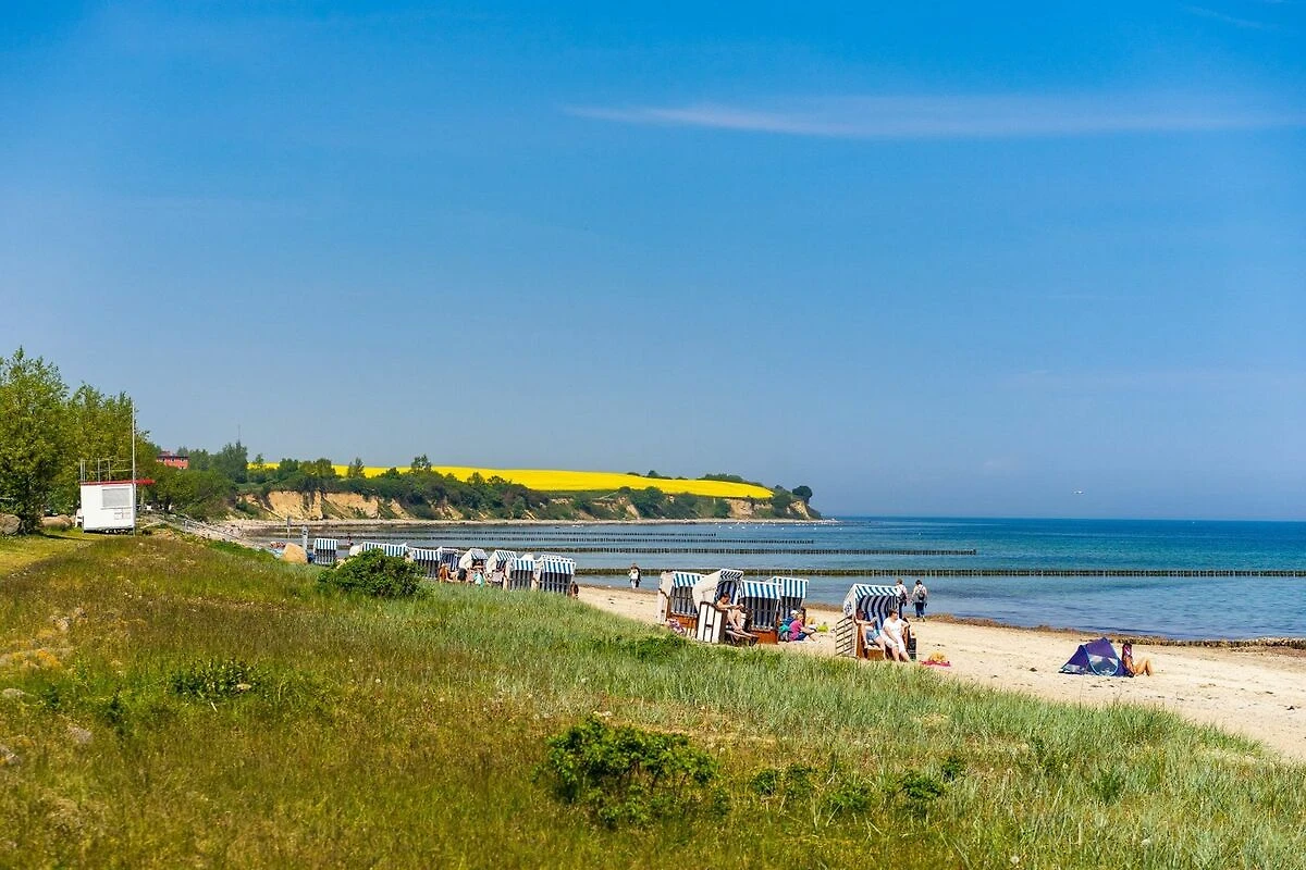 Das Urlauberdorf liegt ruhig und grün eingebettet, nur 350 Meter vom feinsandigen Ostseestrand entfernt, der in der Hauptsaison von der DLRG bewacht wird. Das beliebte Feriendorf ist parkähnlich angelegt und bietet mit Spielplatz, Tischtennisplatte, Fussballplatz und gemütlichen Sitzgelegenheiten viel Raum für Erholung und Abwechslung.