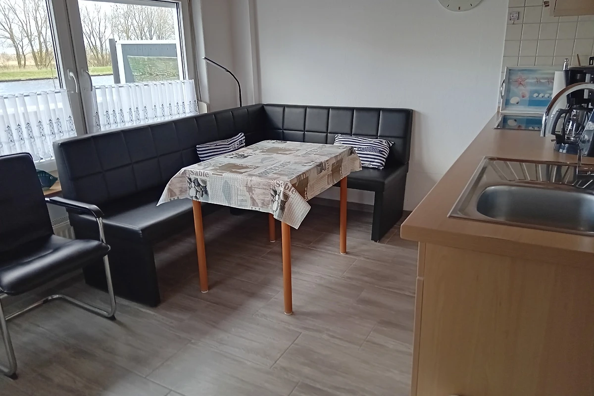 Was man dem Häuschen von außen garnicht zutraut ist das Platzangebot, ein reichlich bemessener Schlafraum und ebenso die Küche. Die Warmwasserversorgung ist klasse, alles sehr sauber und aufgeräumt, kurzum: alles bestens. Der Ems-Jade Kanal wird in bescheidenem Maße durch Sportboote genutzt, das stört nun überhaupt nicht. Und auch die Tatsache, das die Kleinfliegerei vom Mariensieler Flugplatz aus startet/landet war für uns keinerlei Problem, schließlich rauschen da keine Airbusse oder Boeings ab. Und da wir darauf geachtet haben, daß unsere beiden (kleineren) Fellnasen ihre Geschäfte nun nicht unmittelbar vor dem Nachbarhaus erledigten waren unsere Vierbeiner und besagte Nachbarn schließlich auch Freunde geworden. Vielleicht würde ein Microwellengerät den sehr schönen Eindruck dieser Ferienwohnung noch runder machen. Auf jeden Fall merken wir uns diese Unterkunft und wenn es paßt: sehr gerne wieder.