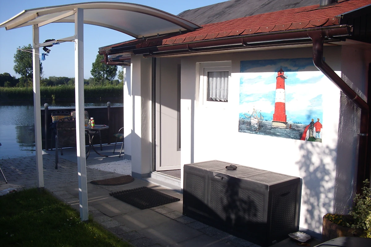 Buchstäblich direkt am Wasser, einen "Schritt weiter und man landet im Ems-Jade Kanal".