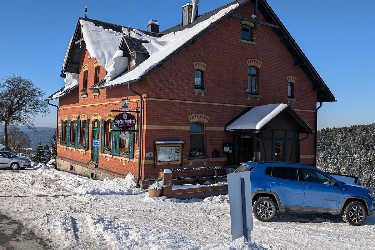 in fast 900 Metern Höhe, thront die “Schöne Aussicht” über der waldreichen Mittelgebirgslandschaft des Vogtlandes auf dem Klingenthaler Aschberg. Hier erwartet Sie rustikale Gastlichkeit und eine ausgezeichnete vogtländische Spezialitätenküche.