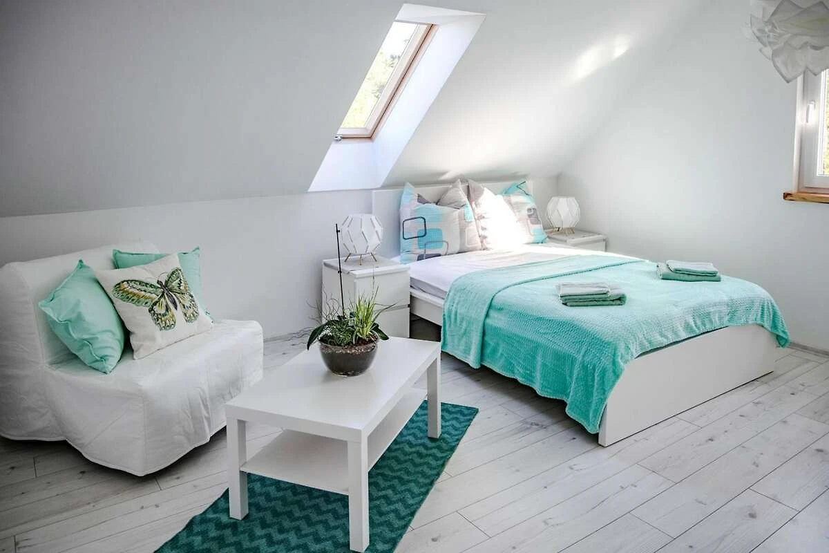 Der Strand ist nur 2,5 km entfernt und besticht neben der zweifellos malerischen Aussicht durch seine Ruhe, selbst in der Hochsaison. Sie erreichen ihn bequem mit dem Fahrrad über einen der zahlreichen Radwege und können dabei nahegelegene Küstenorte entdecken. Kleinere, charmante Orte wie Poddąbie oder Orzechowo laden zum Verweilen ein, während größere Badeorte wie Rowy (6 km) oder Ustka (13 km) mit einer großen Auswahl an guten Restaurants locken. Überquert man in Rowy die Łupawa (Angeln ist hier erlaubt), gelangt man zum Eingang des Nationalparks (des drittgrößten in Polen). Zahlreiche Wanderwege führen zu den schönsten Sehenswürdigkeiten des Parks: dem Leuchtturm Czołpino, dem Auwald, den Wanderdünen, den Heidelandschaften, der Leuchtturmwärtersiedlung und Aussichtspunkten über den Gardno-See. Ein Spaziergang auf den bis zu 40 Meter hohen Dünen ist ein unvergessliches Erlebnis.