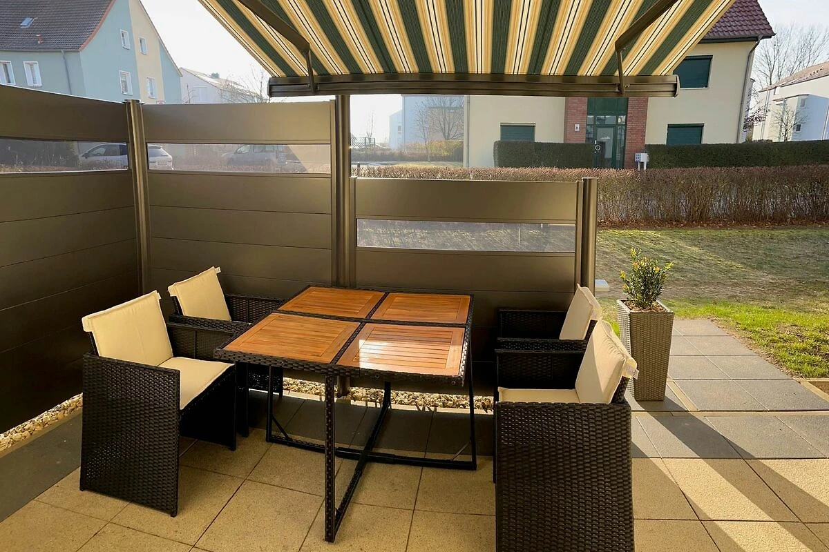 Vom Wohnbereich betreten Sie die möblierte Terrasse, die nach Süden ausgerichtet ist. Hier können Sie Sonne tanken, relaxen und den Abend nach einem schönen Tag am Meer ausklingen lassen.
