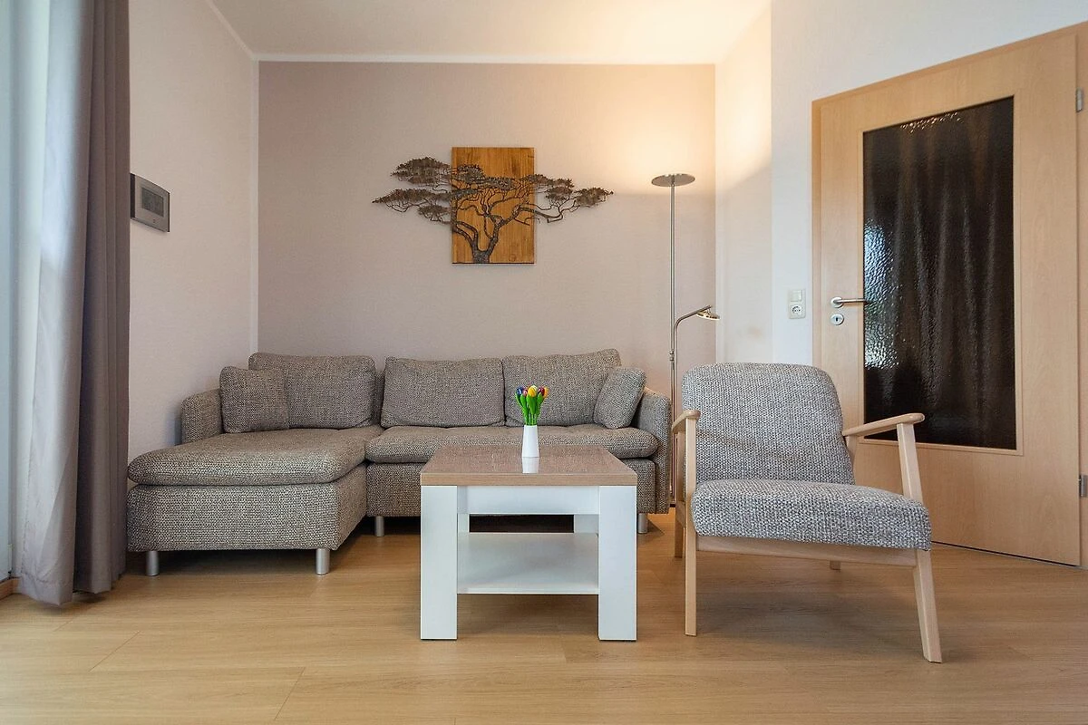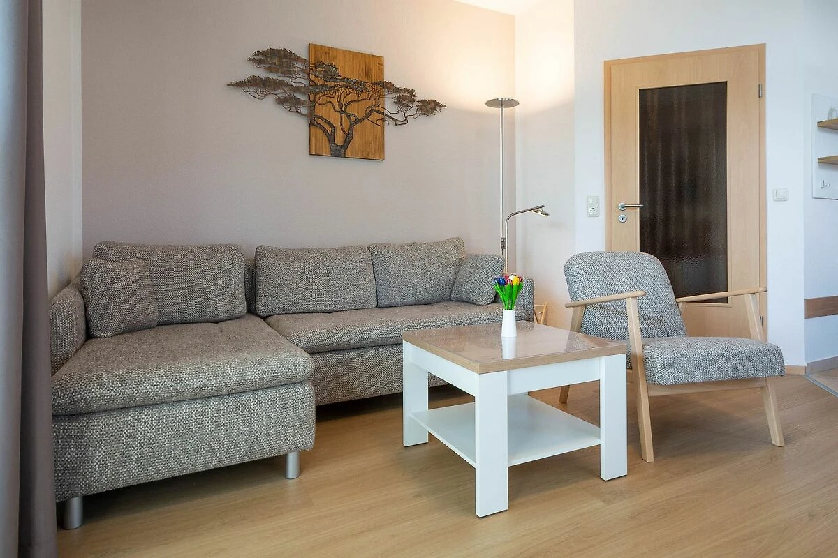 Herzlich willkommen in der Ferienwohnung Nr. 01 in der Waldstrasse 30. Die liebevoll eingerichtete 2-Raum-Ferienwohnung befindet sich im Erdgeschoss des Hauses. Auf 54 qm Wohnfläche können hier 2 bis 3 Personen erholsame Urlaubstage geniessen. Es empfangen Sie ein heller offener Wohn-und Essbereich mit einer Küchenzeile, ein Schlafzimmer, ein Duschbad sowie eine nach Süden ausgerichtete Terrasse.